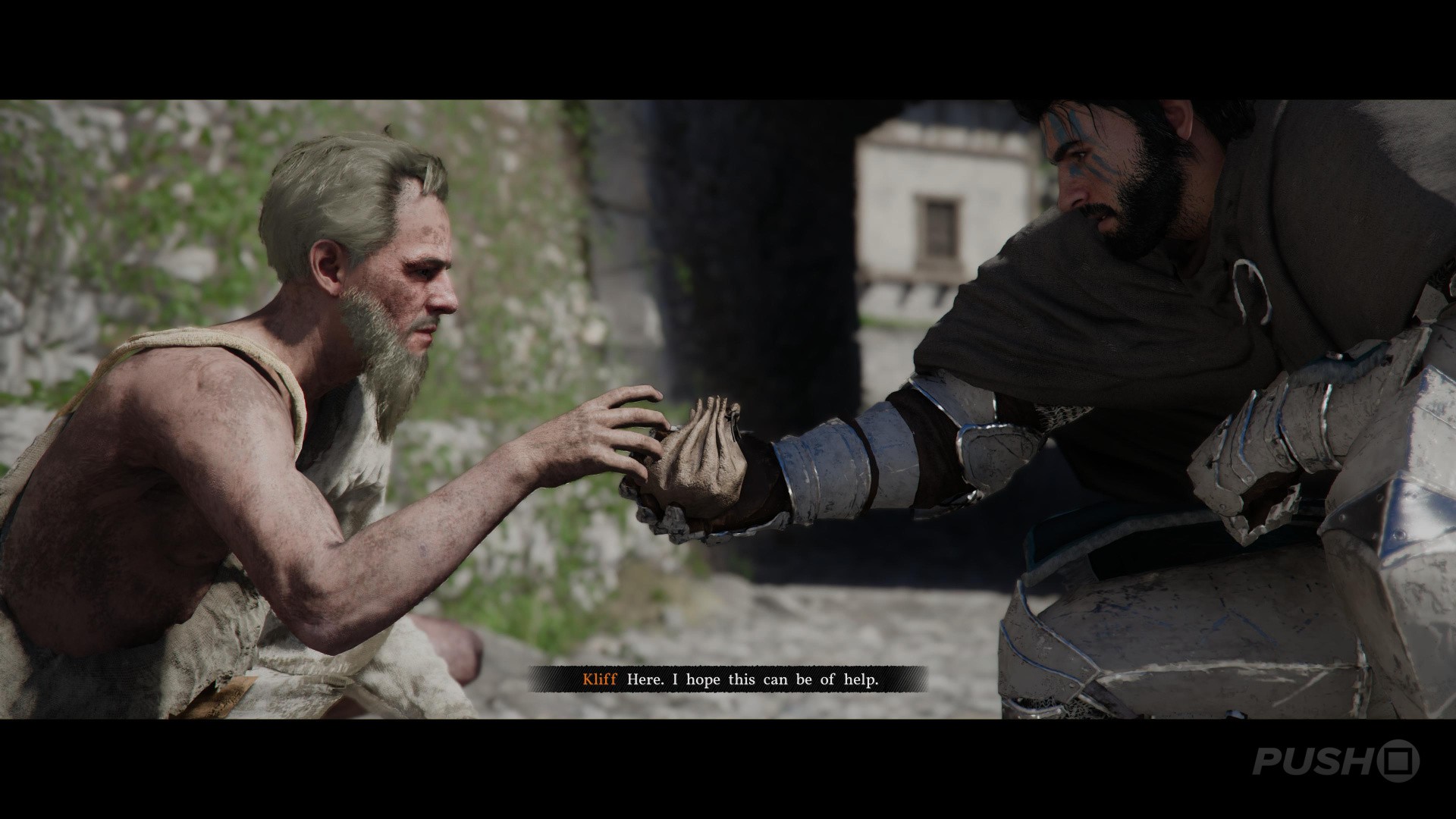 It opens normally enough: you play as Kliff, a Greymane who's ambushed at camp. You're killed in battle, chucked off a cliff into a river, and then resurrected by a magical bracelet. Having made your way through some kind of magical sky island, you return to the open world of Pywel.