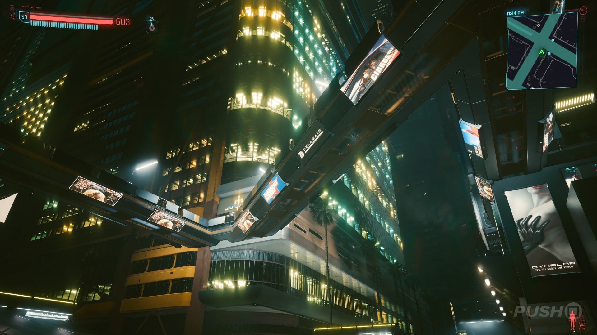 With this mode enabled, Night City is simply stunning when the sun goes down. Every neon sign, every streetlight, every lit-up room in every skyscraper — they all give off a believable glow, be it warm or cold.