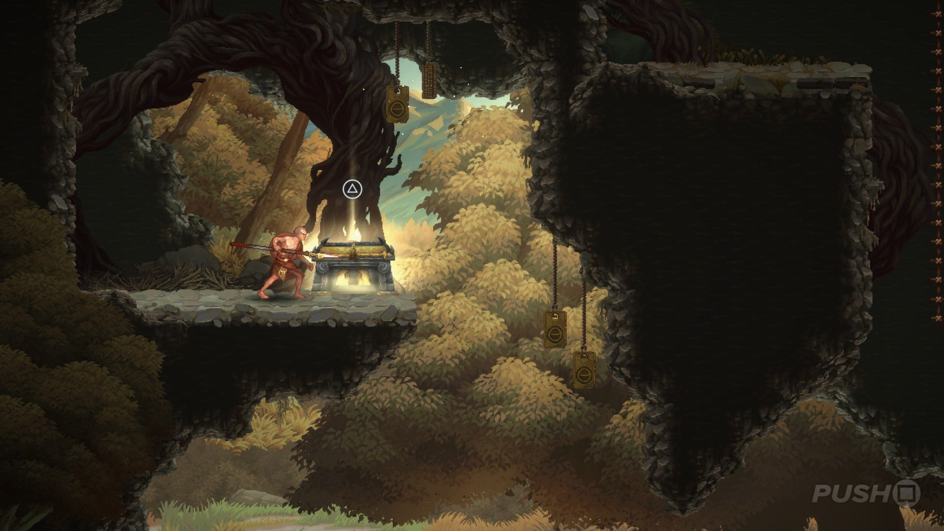 Pleasingly, the game begins as all God of War games do — with a boss fight. While not on nearly the same level as some of the inaugural battles in the main titles, you're thrown in the deep end right away before the main rhythms of a Metroidvania settle in.