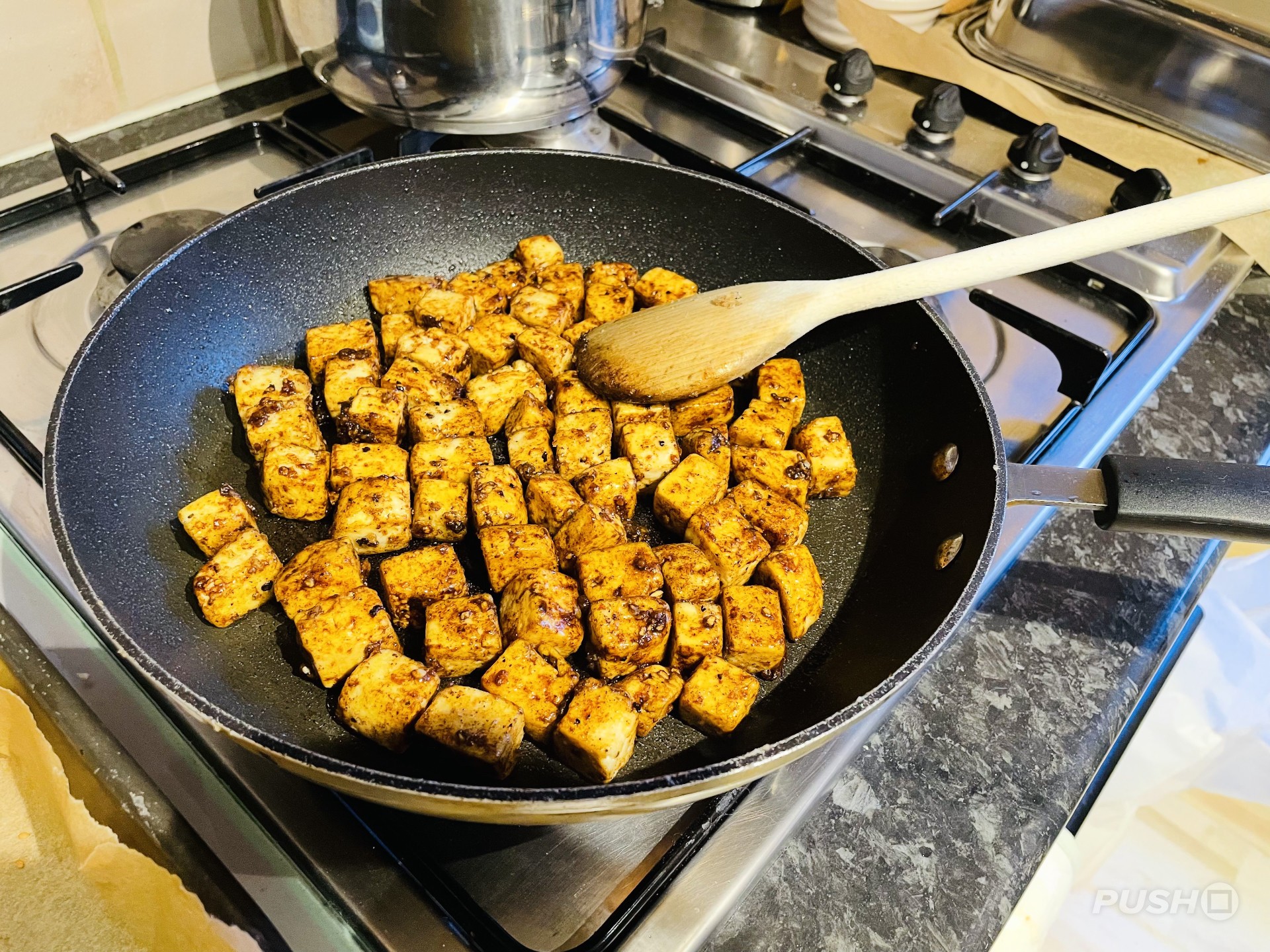 I'm usually not a huge fan of tofu, but these bite-sized pieces with their flavoursome coating are tasty little morsels. Obviously this should be served with other things, perhaps in a stir-fry, but it more or less works as a standalone snack too.