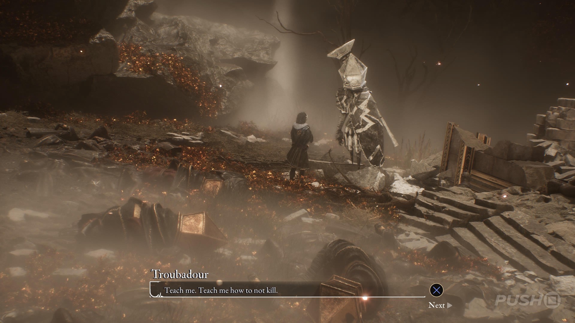 - When you meet Troudadour, you can engage him in conversation and you learn how he wants to learn how not to kill