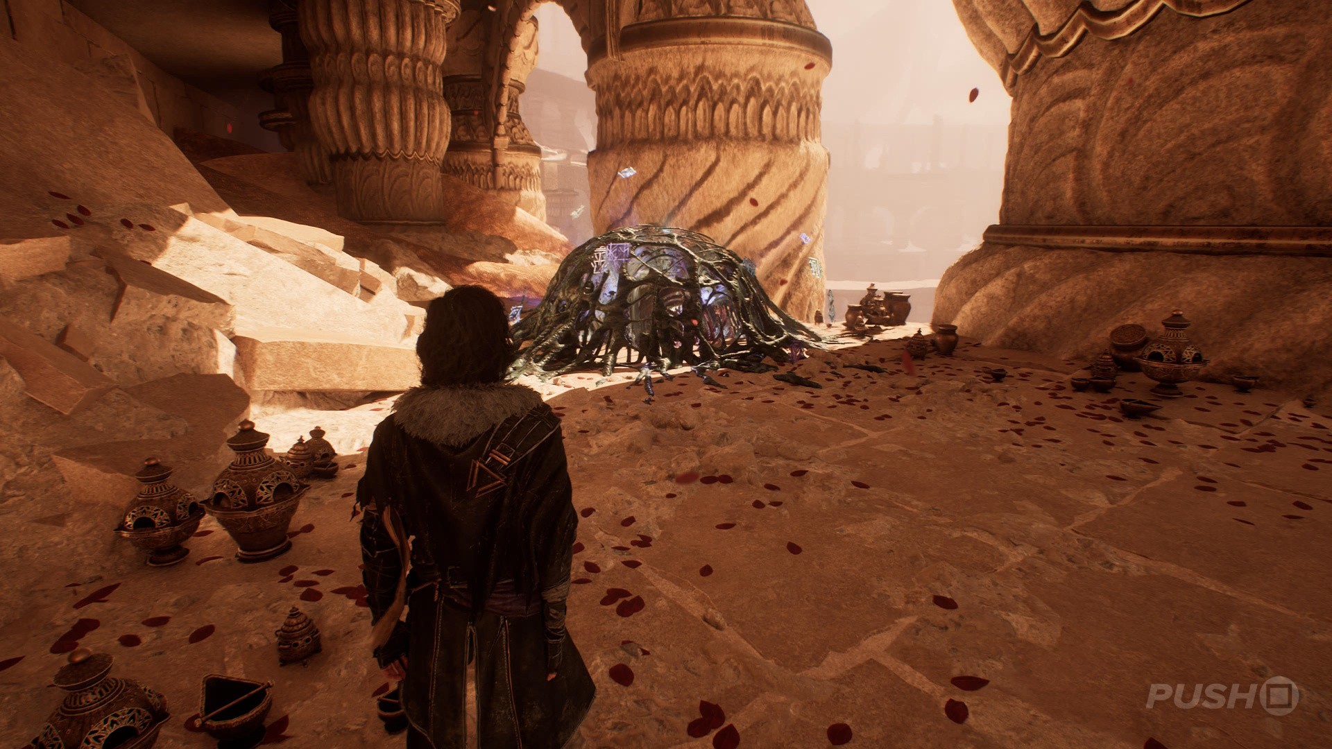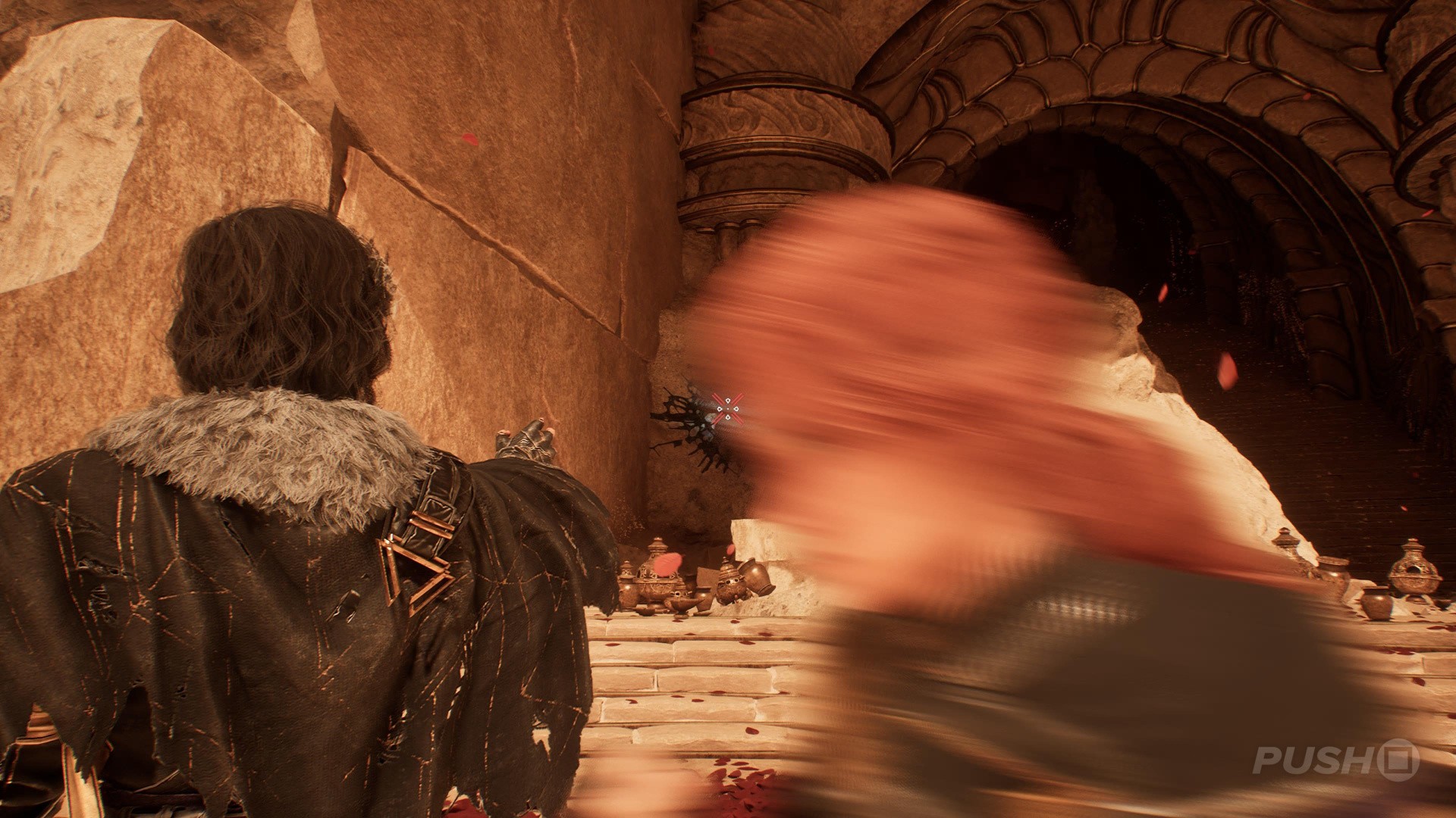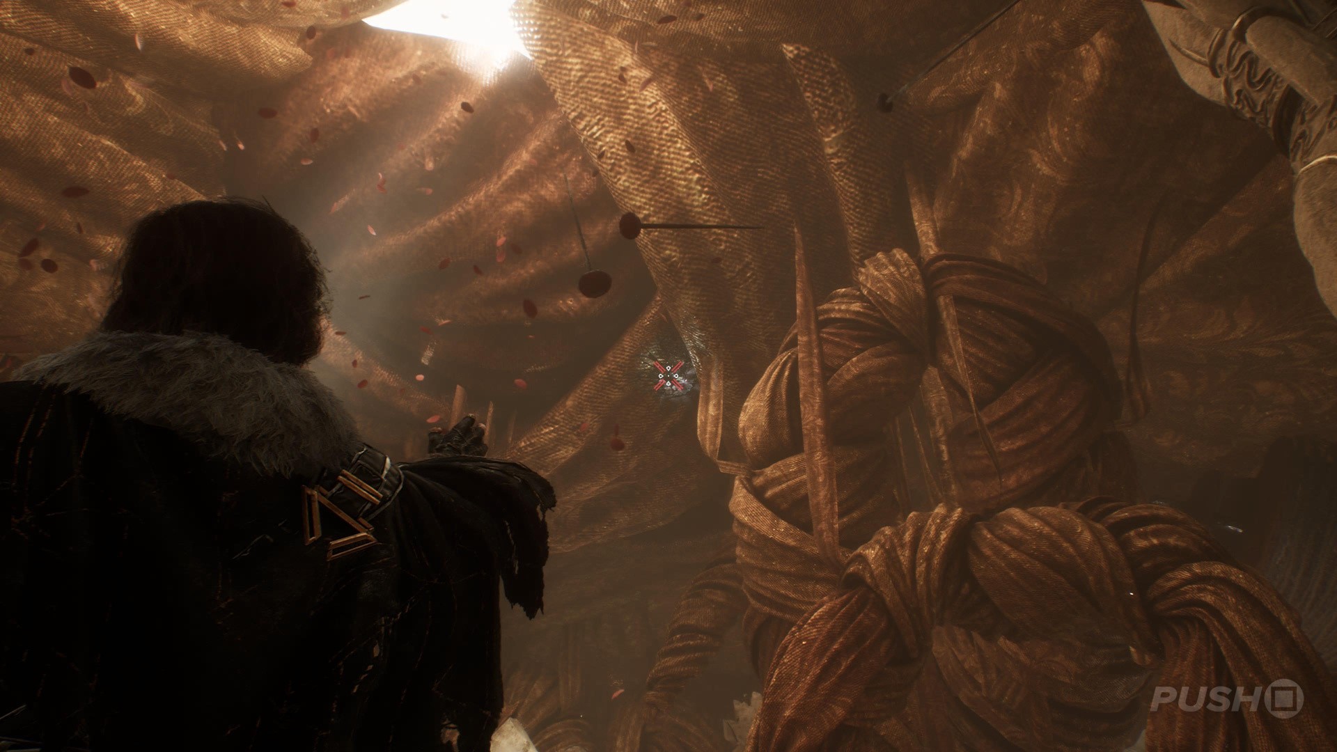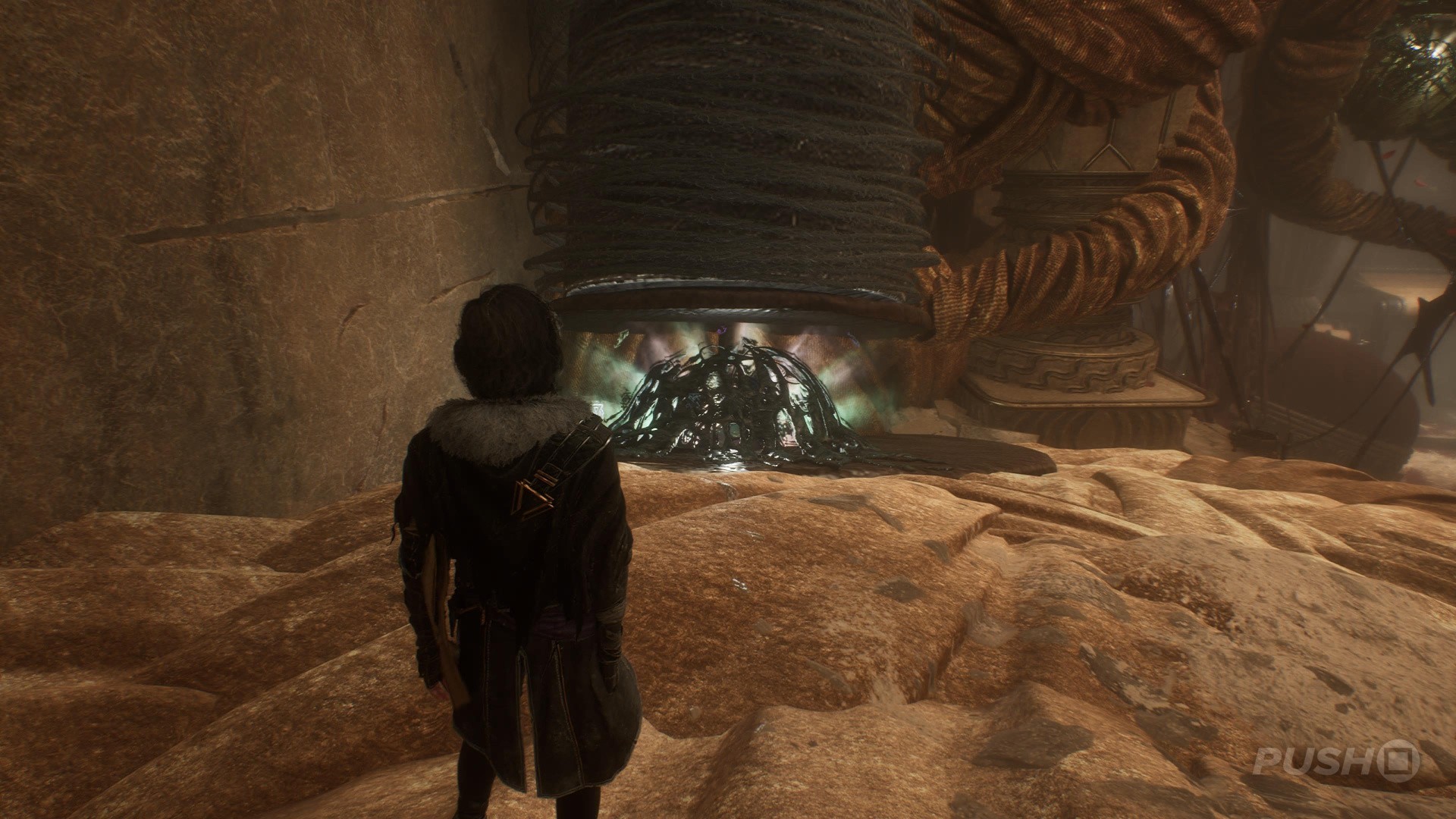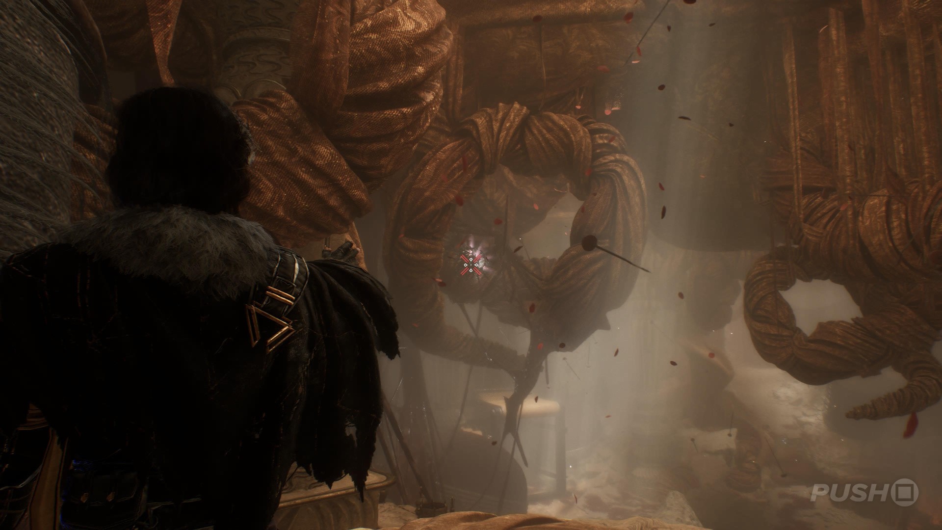 - In the room with the Tisseur boss, you can climb a path to the left of the entrance that leads you to the Paint Cage
