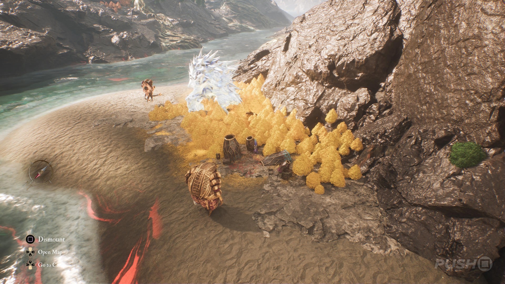 - On the large island northwest of Stone Wave Cliffs, you can access an area on its northern side