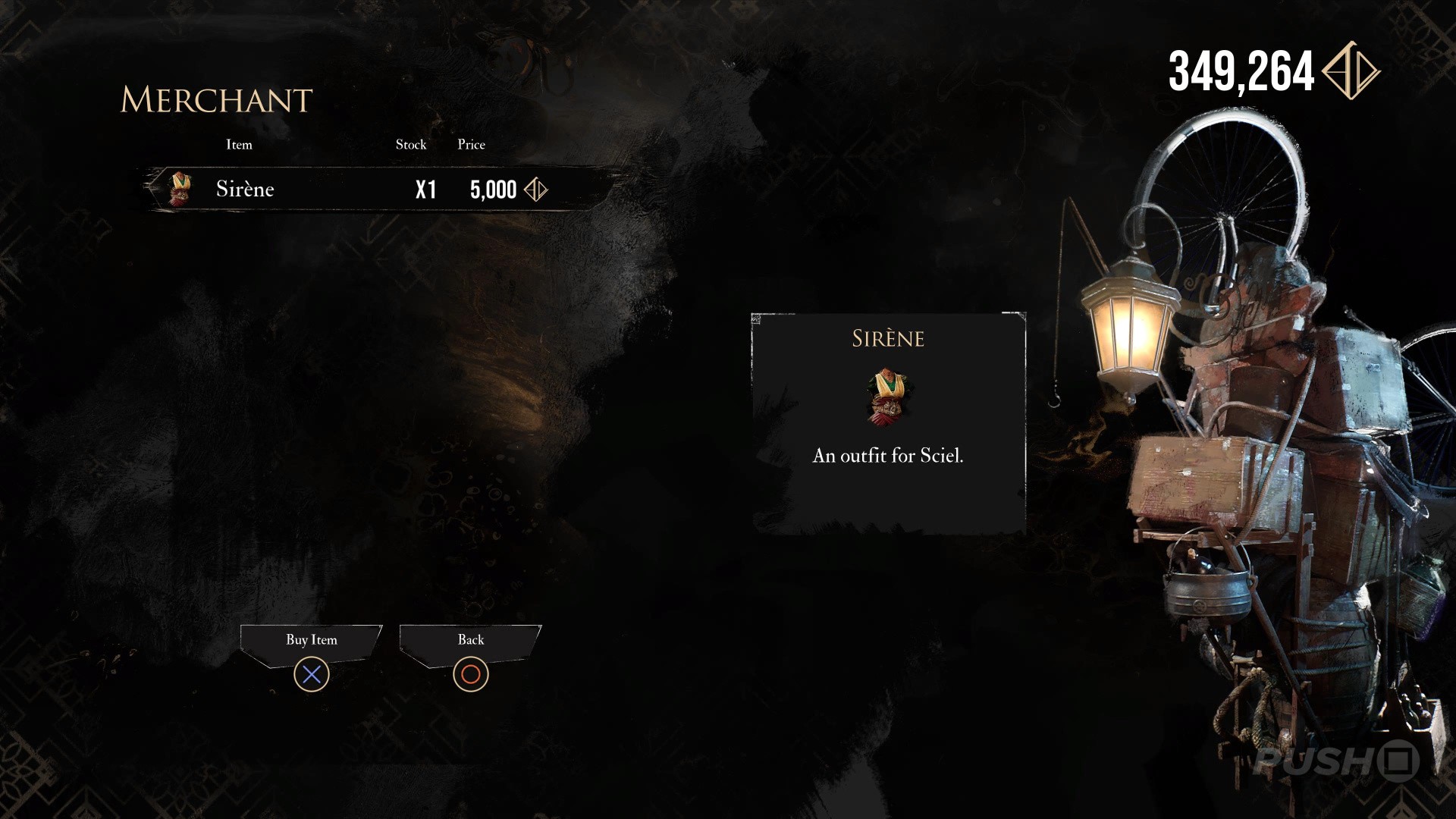 - Next to the entrance to Sirene's Dress is a Merchant selling the Outfit for 5,000 Chroma