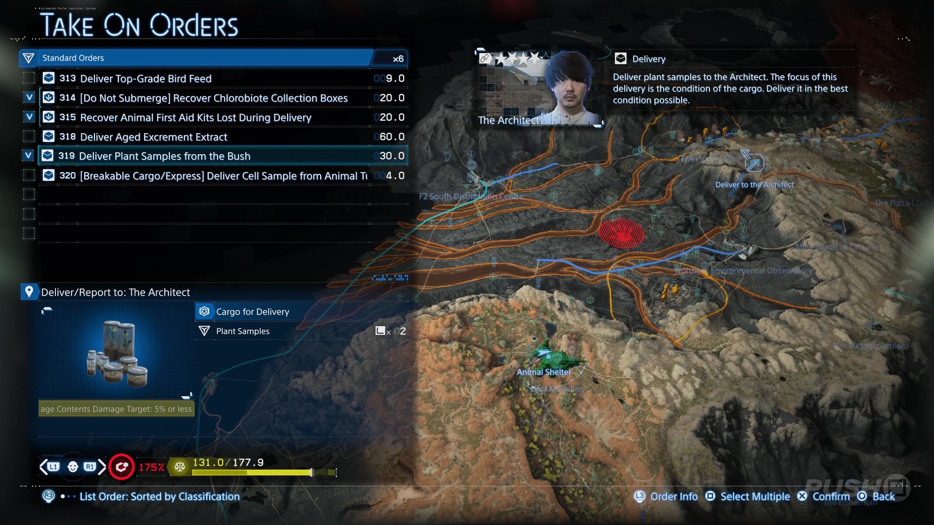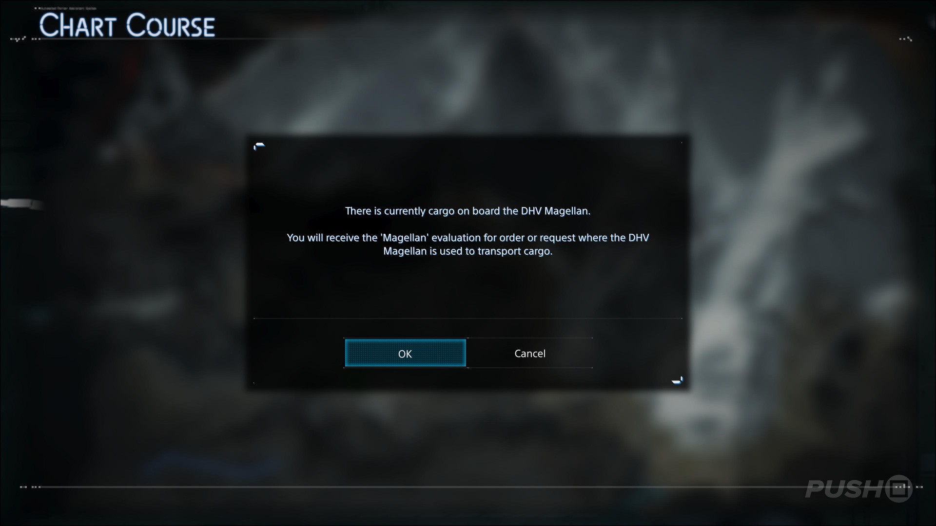 Upon accepting multiple Orders from a Facility, you'll be given a screen listing all the Cargo, asking you where you want to store it for travel. You can make this selection process faster by holding down the Square button as you scroll down the menu.