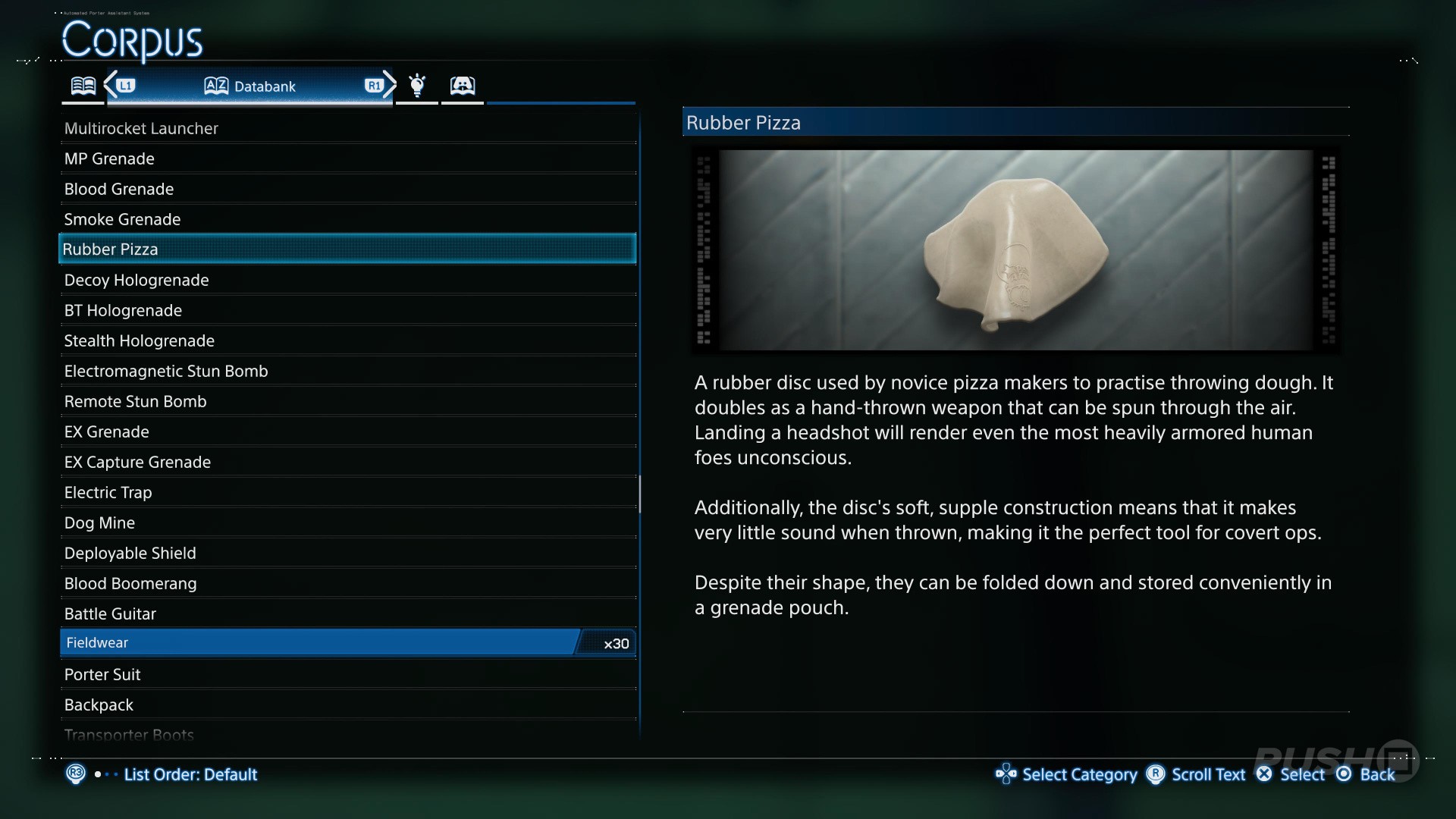A rubber disc used to train aspiring pizzaiolos, provided by The Pizza Chef. It can be thrown as a weapon, knocking even the most heavily armoured humans out when a headshot is scored. Suited for covert ops and fits in a grenade pouch.