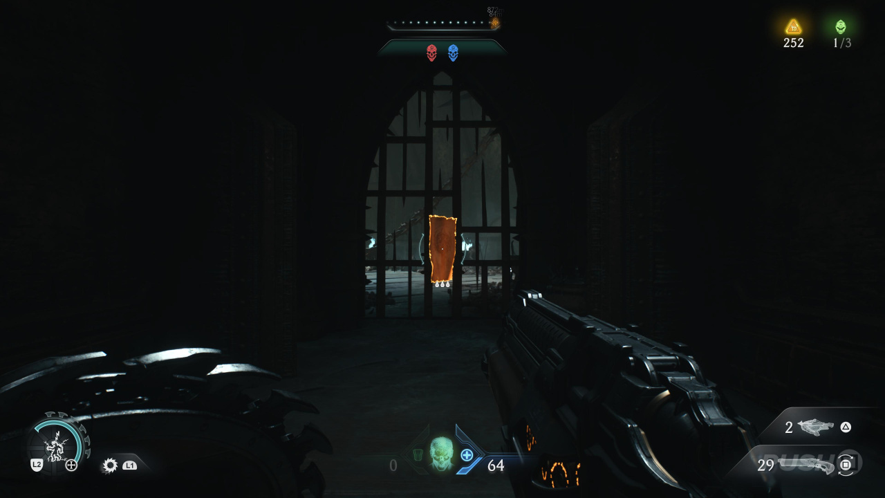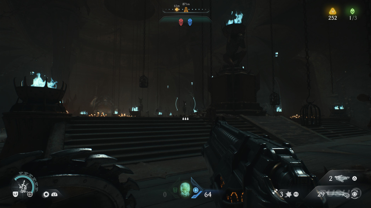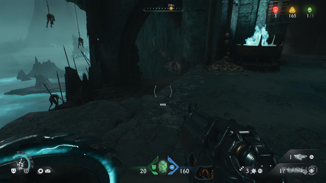 - After a cutscene in which the Doom Slayer blasts an enemy's head off and climbs a chain, you'll reach a new area