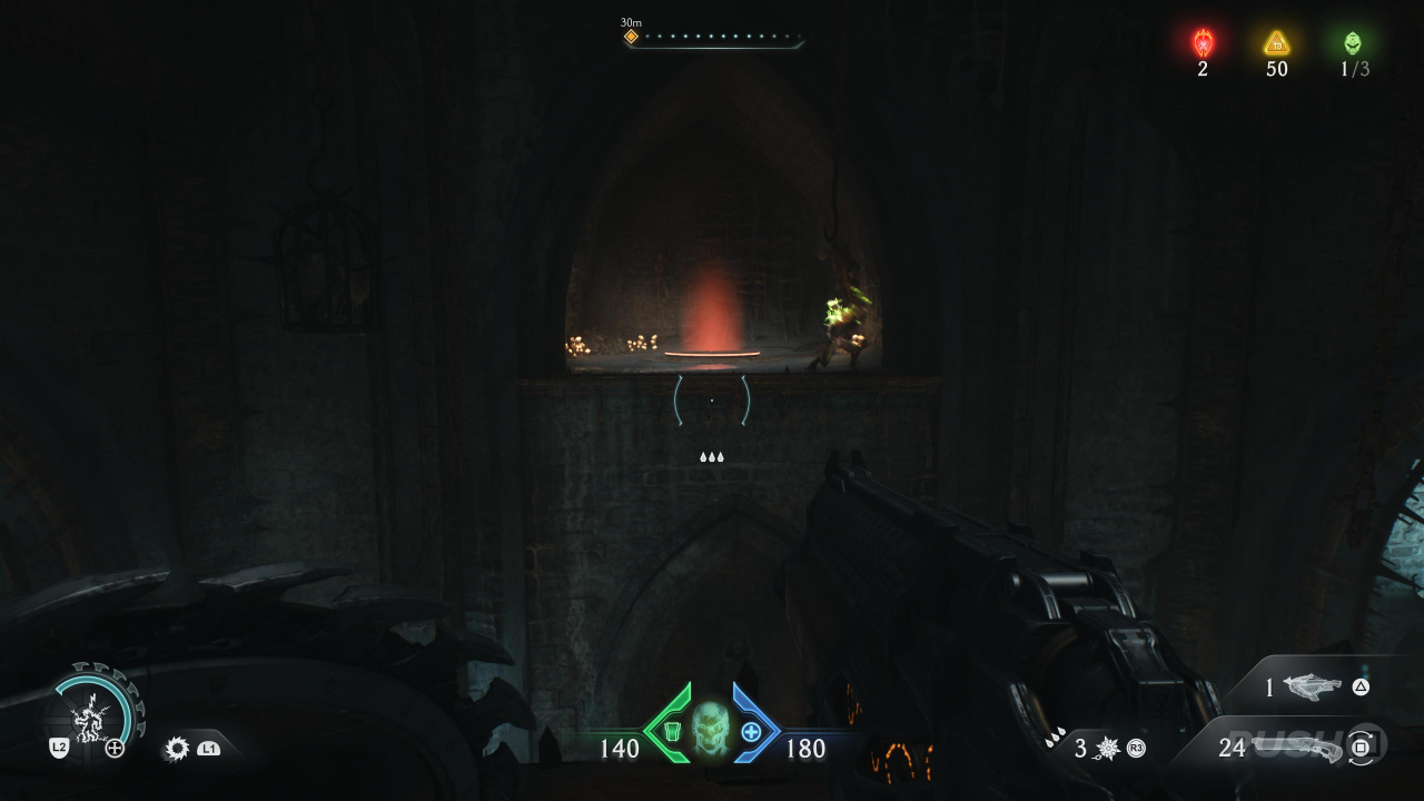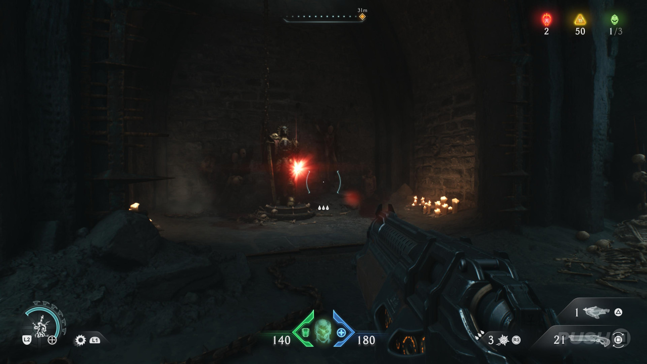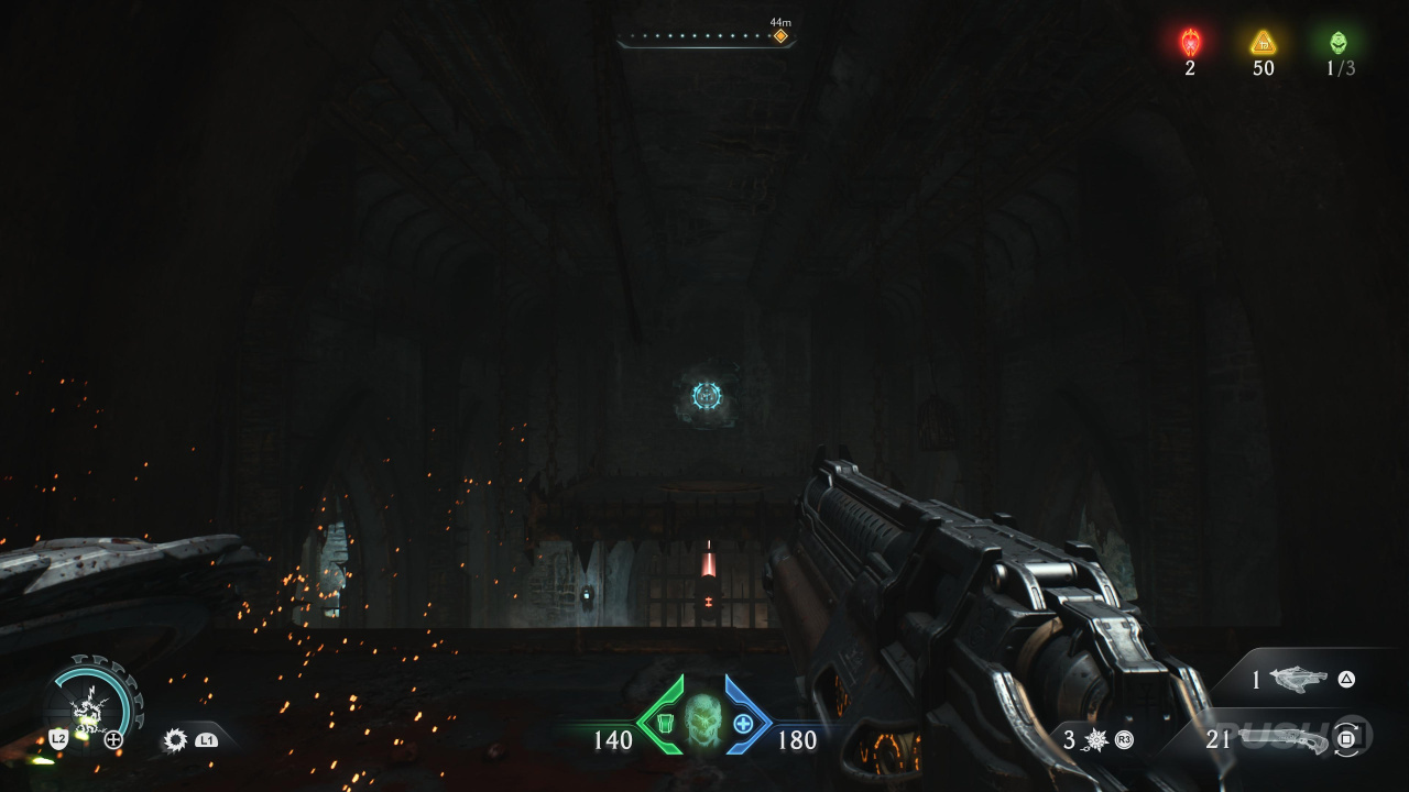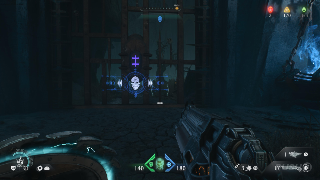 - After a cutscene in which the Doom Slayer blasts an enemy's head off and climbs a chain, you'll reach a new area