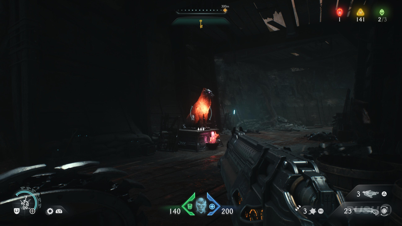 - The third wolf statue is hidden on top of a wall behind an artillery cannon you can Shield Charge
