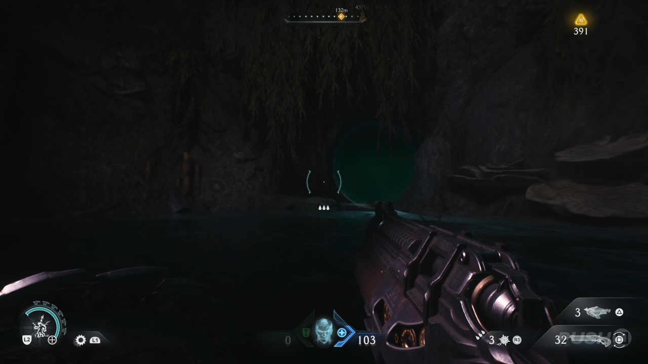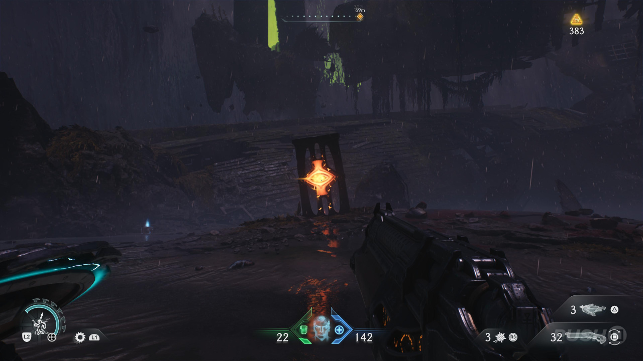 - Defeat the tentacle, then continue along the tunnel by using the boost pad to find the Weapon Skin