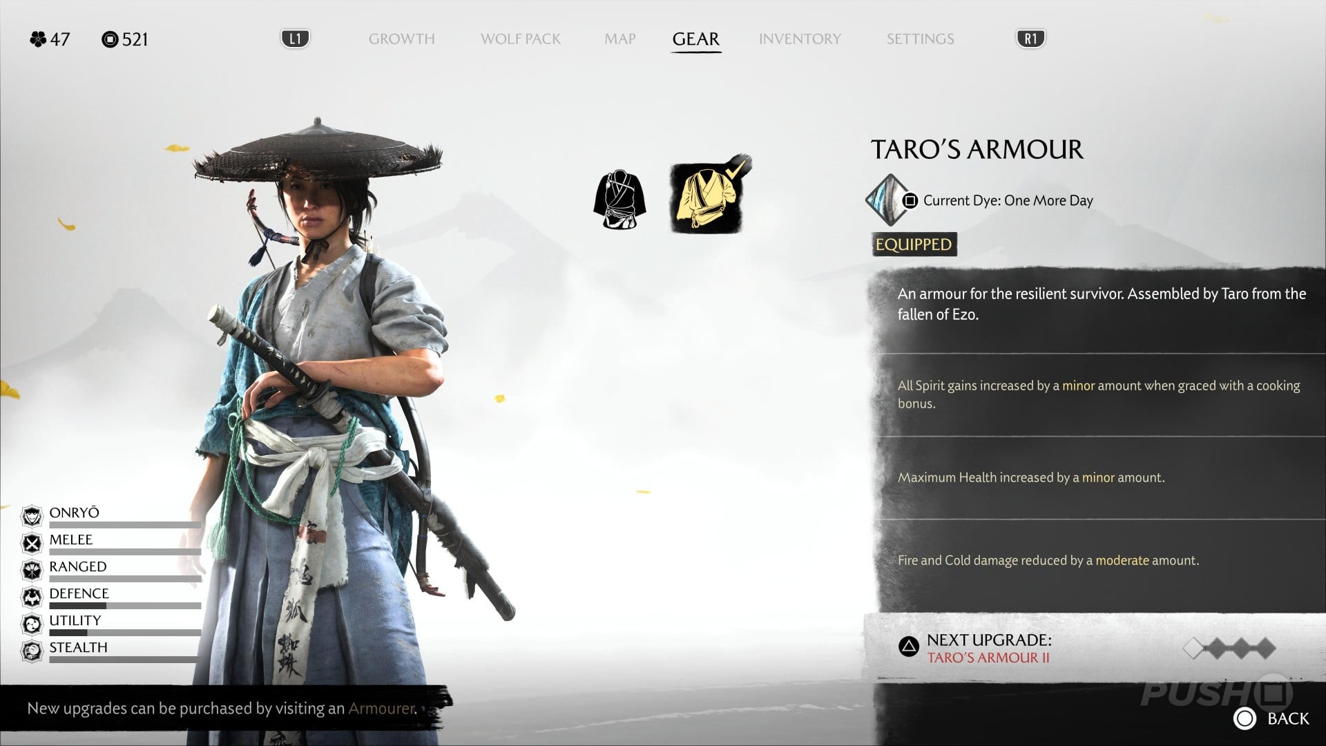 - This is Atsu's starting armor, and it's automatically equipped to her when you gain control.