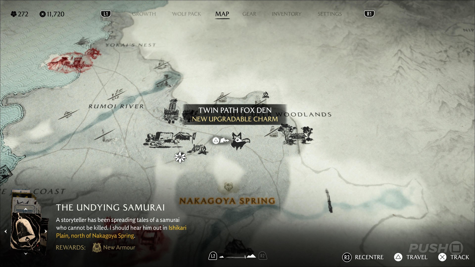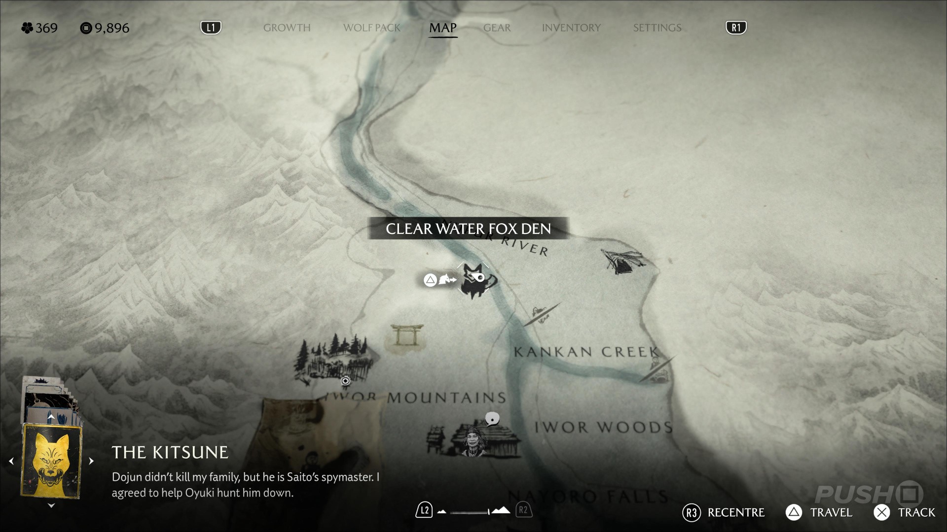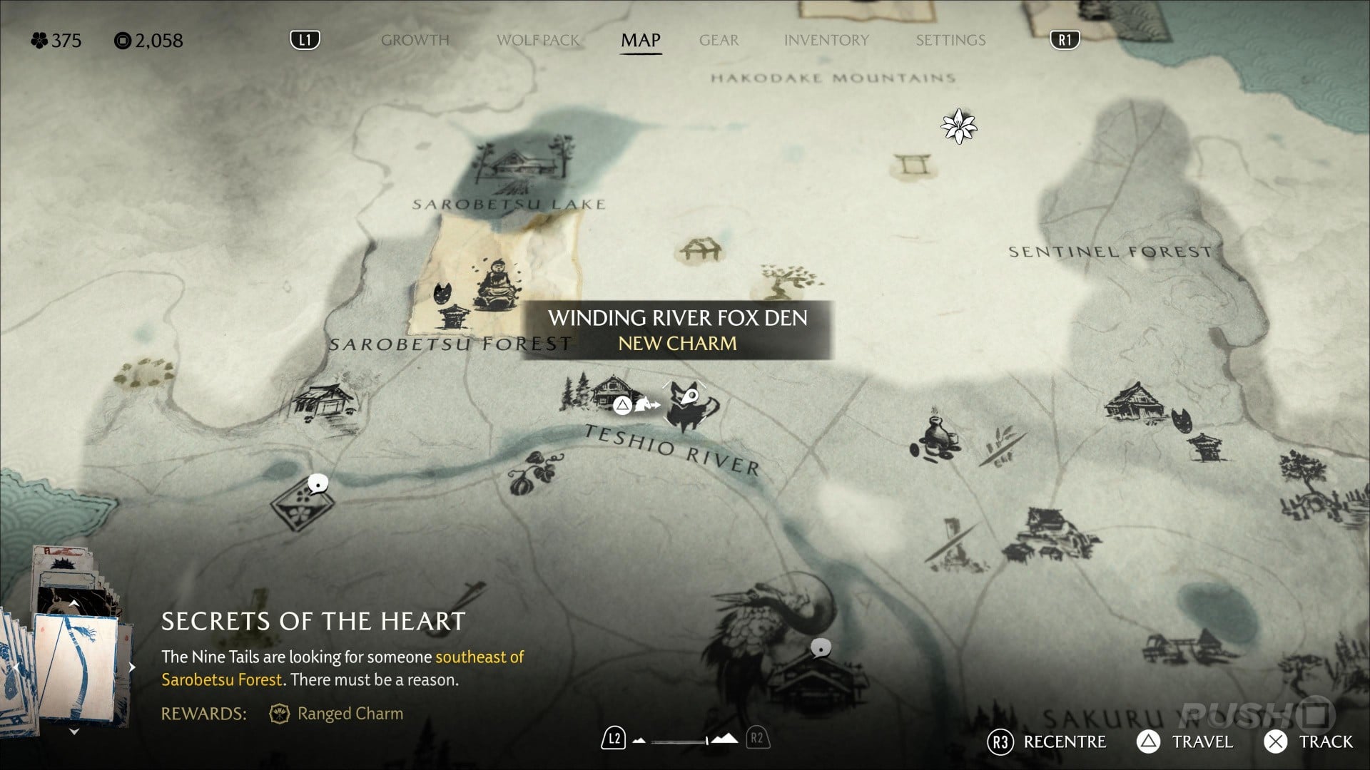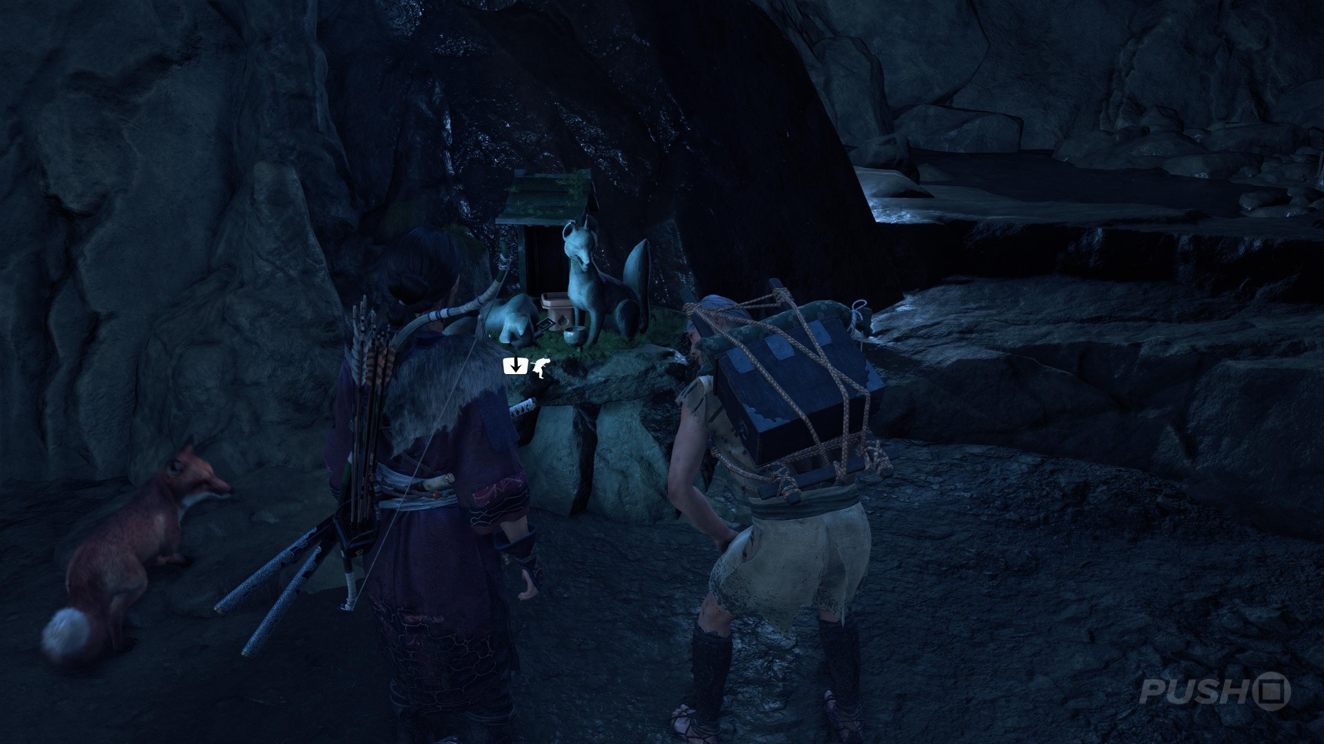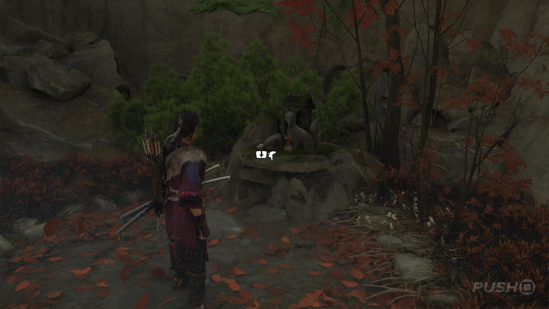 - Up on the hill near the river will be the Fox Den, and you can follow the fox to the Inari Shrine