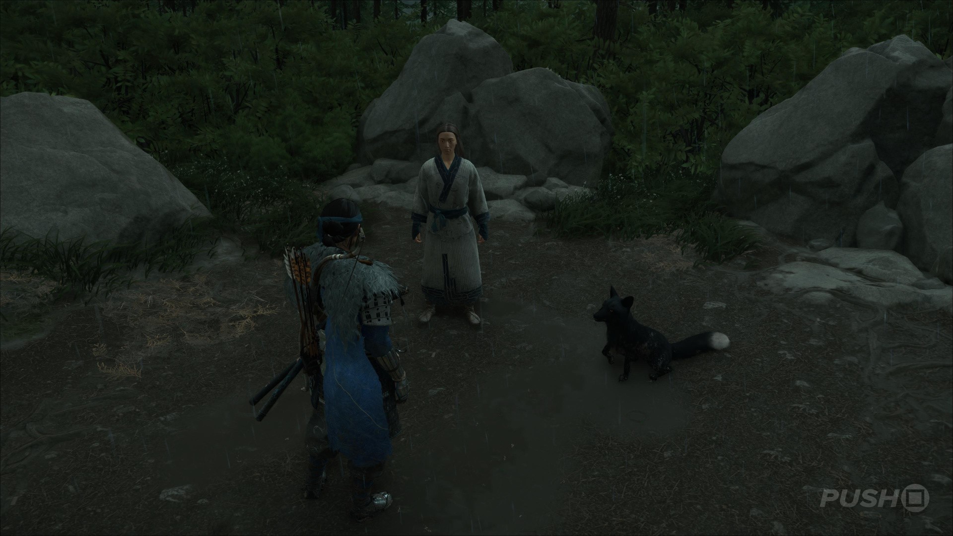 - In the White Deer Woodlands, you'll find the fox waiting for you between the Masked Man's Quarry and Sensei Takahashi's Dojo