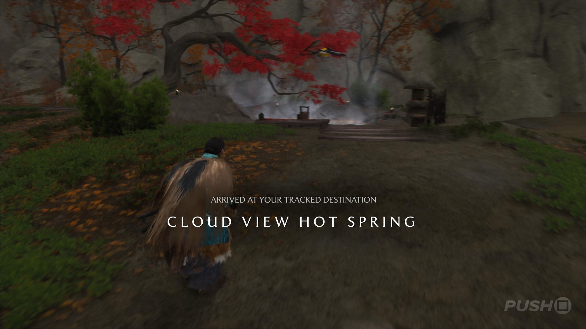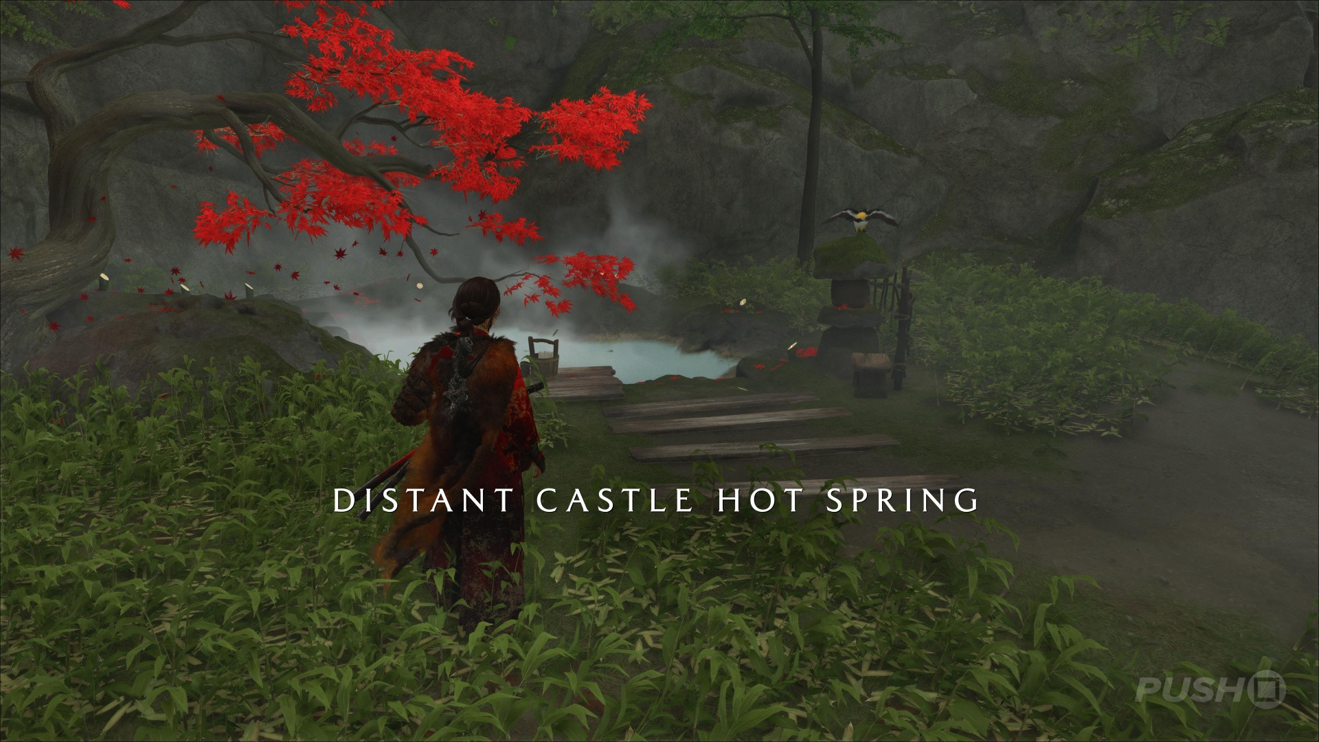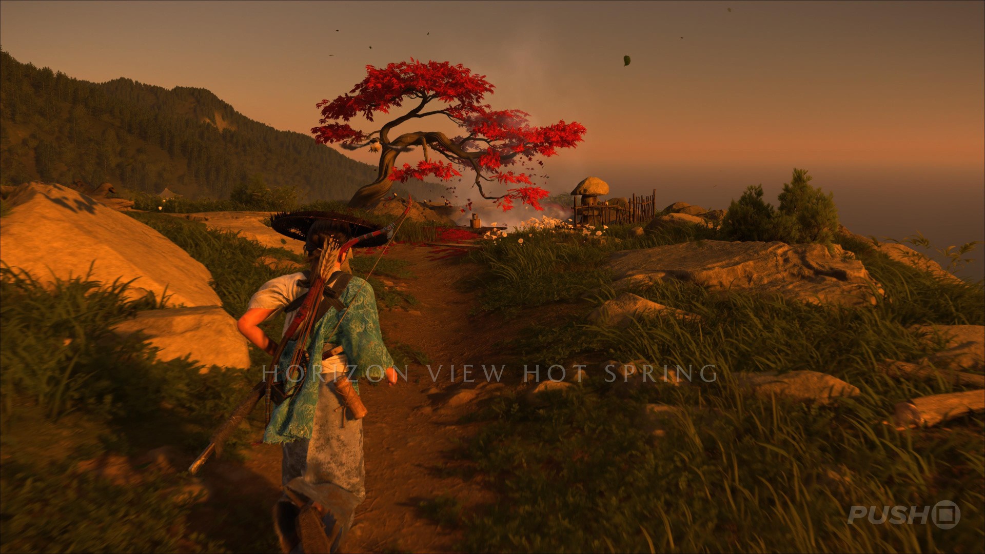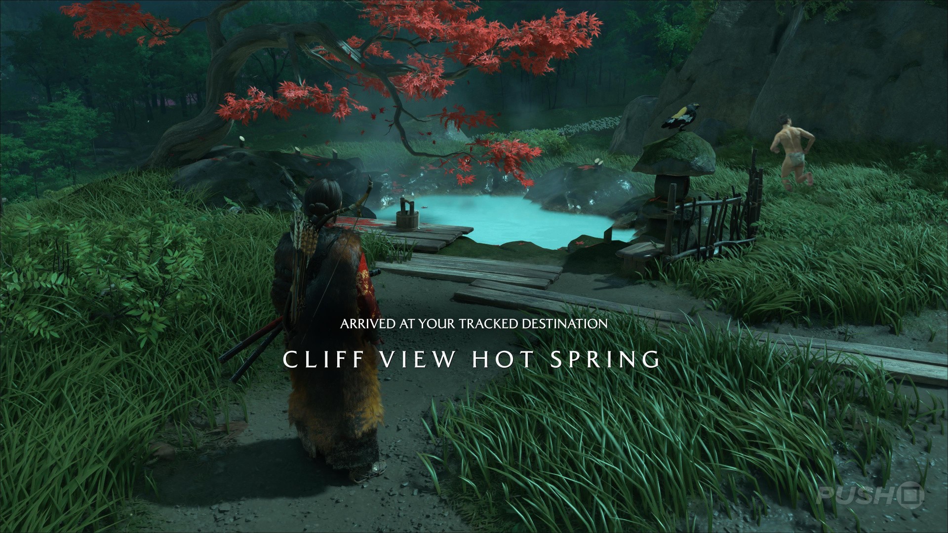 - Northeast of Yotei's Shadow Inn, you can climb up a cliff and find this Hot Spring at the top