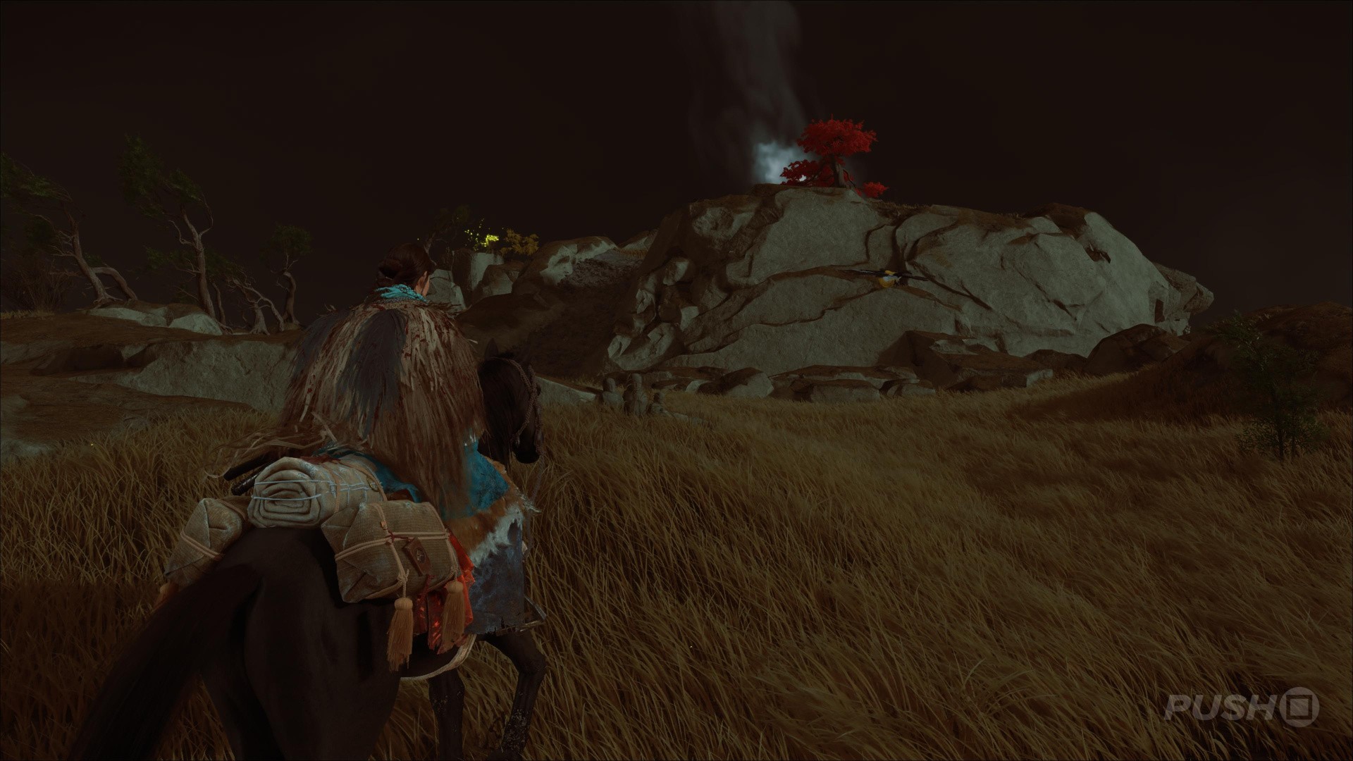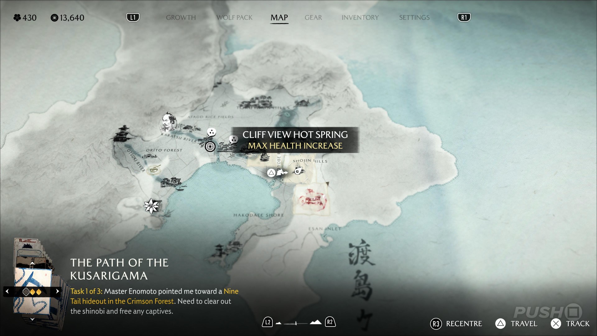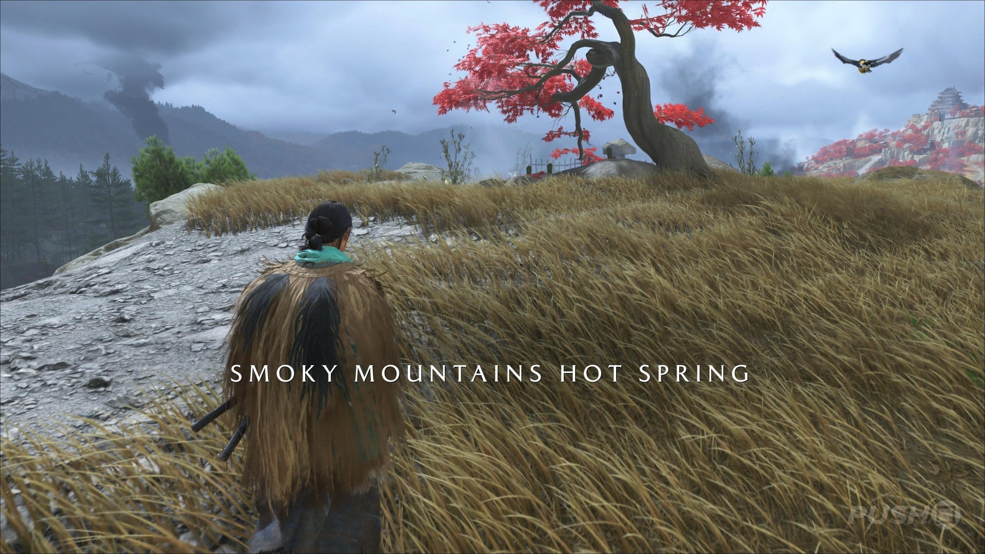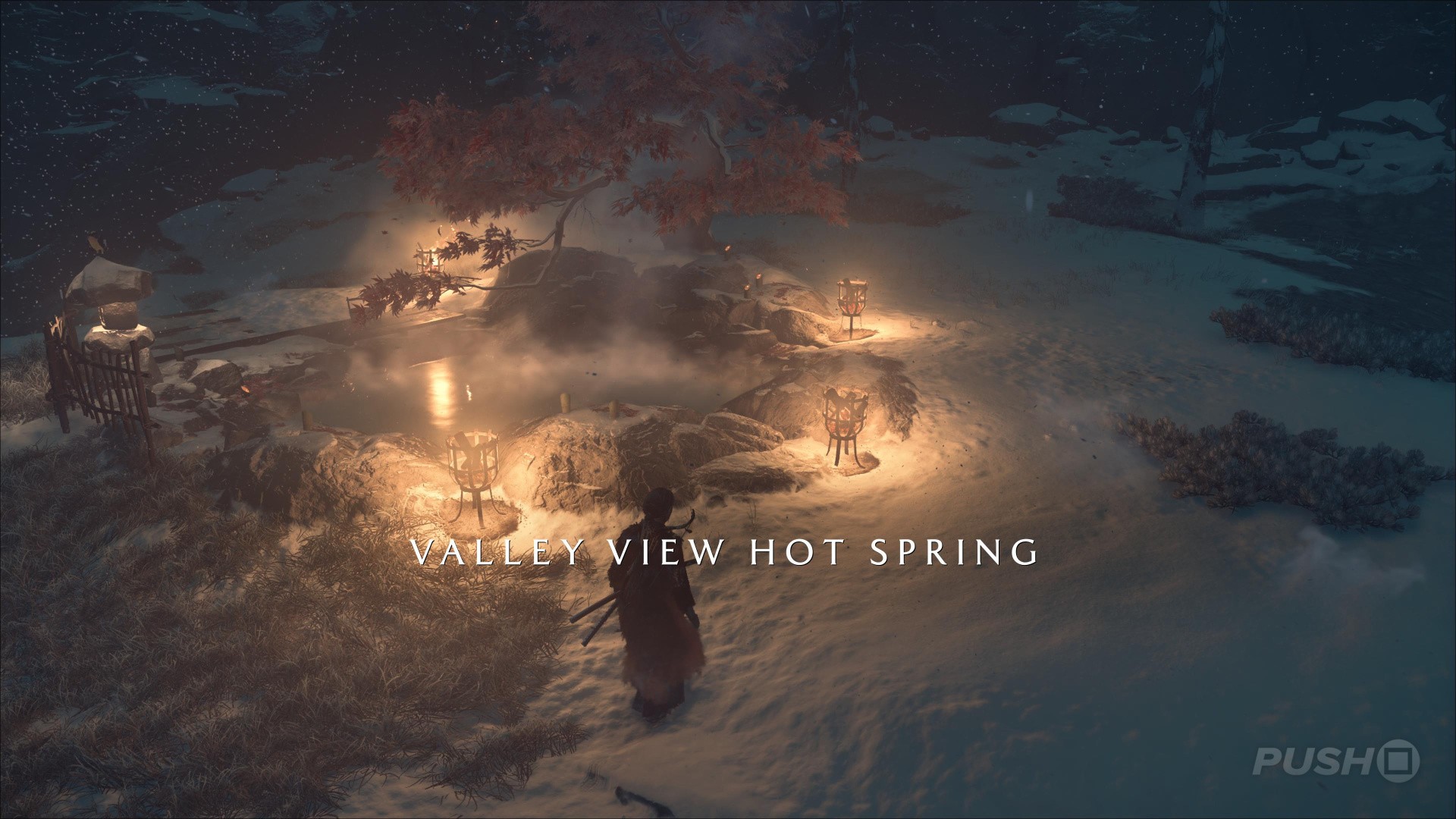 - Northeast of Yotei's Shadow Inn, you can climb up a cliff and find this Hot Spring at the top