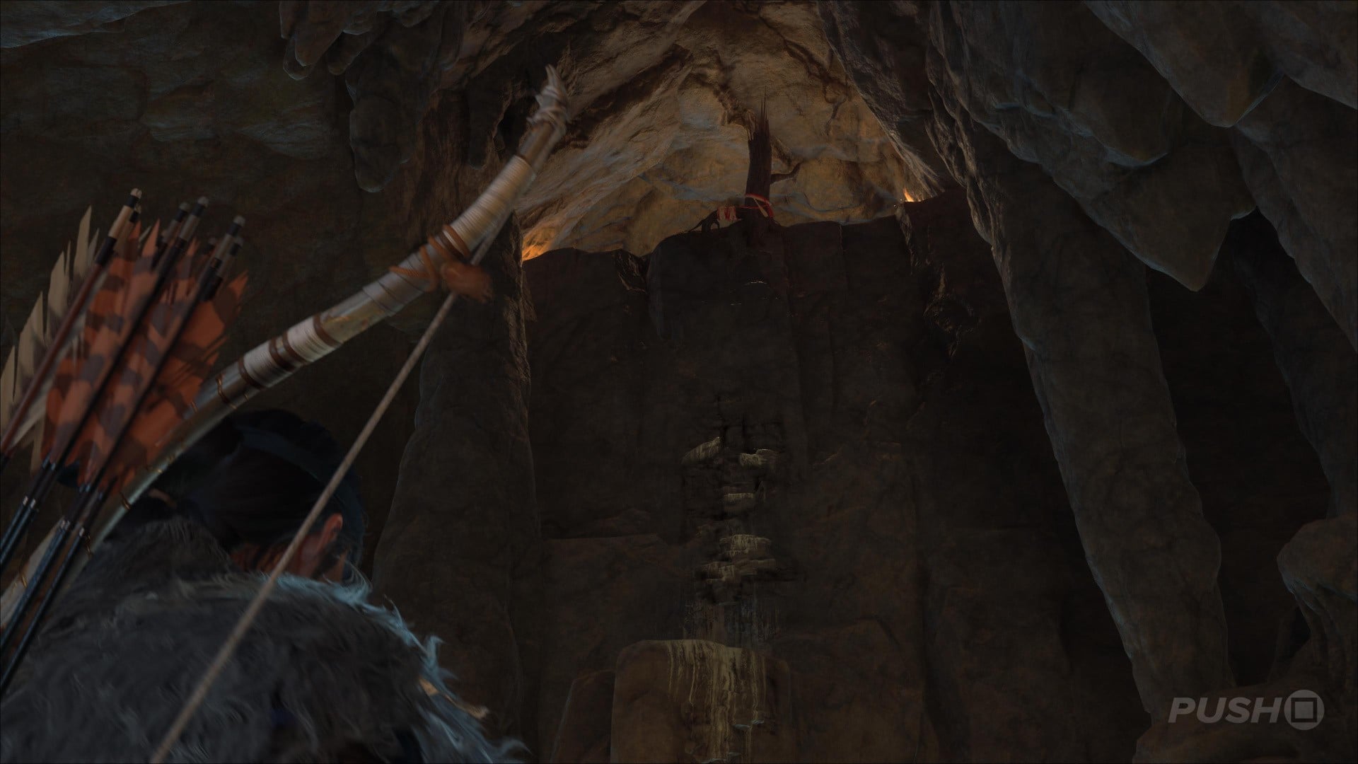 - Follow the path into a cave and go right at the fork