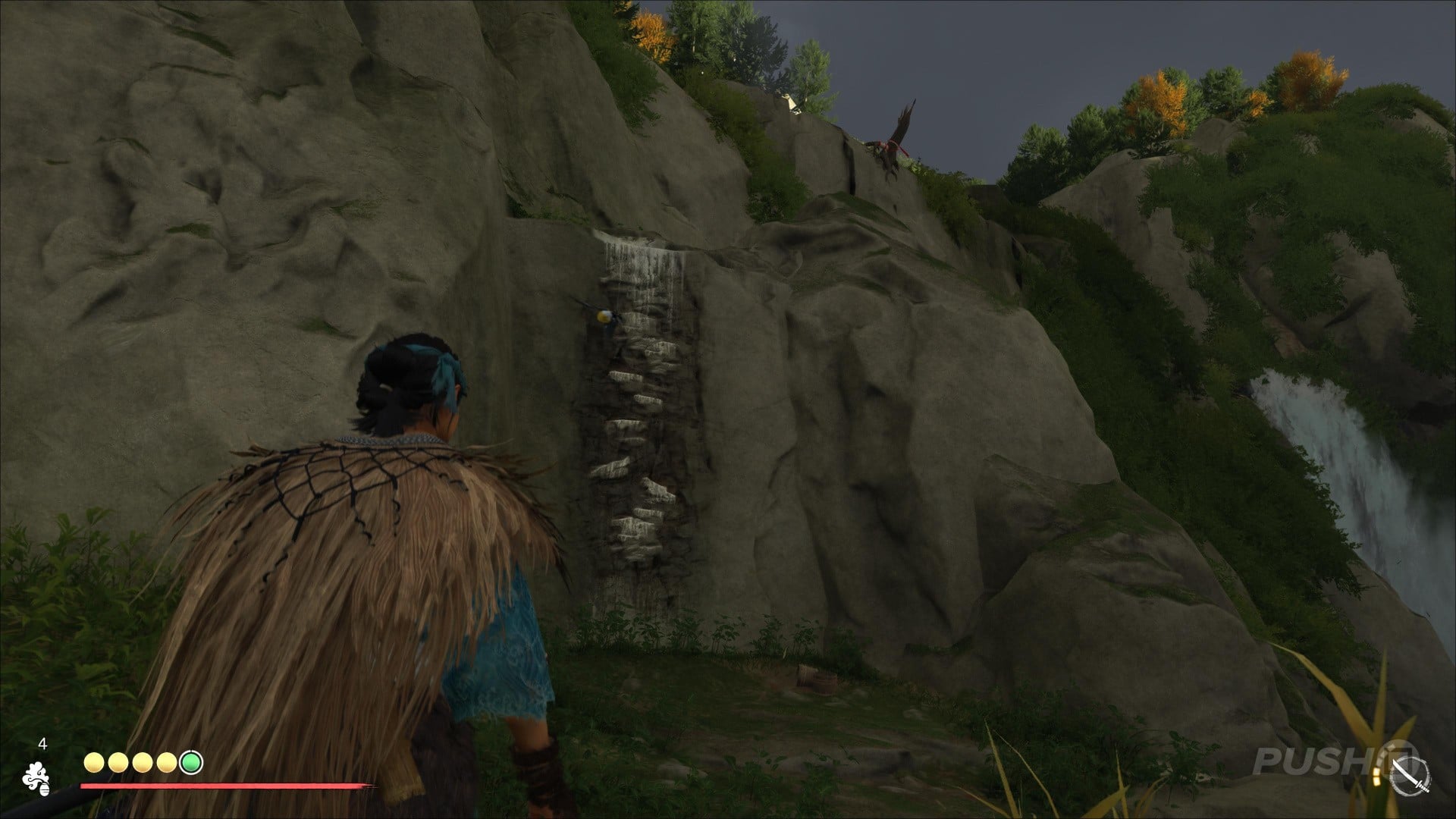 - Along the northern edge of the region, north of Miyama Village, climb to the top of the waterfall