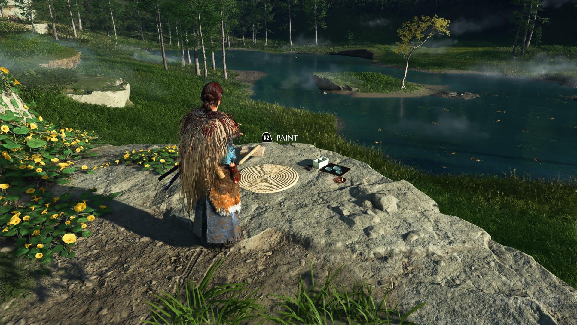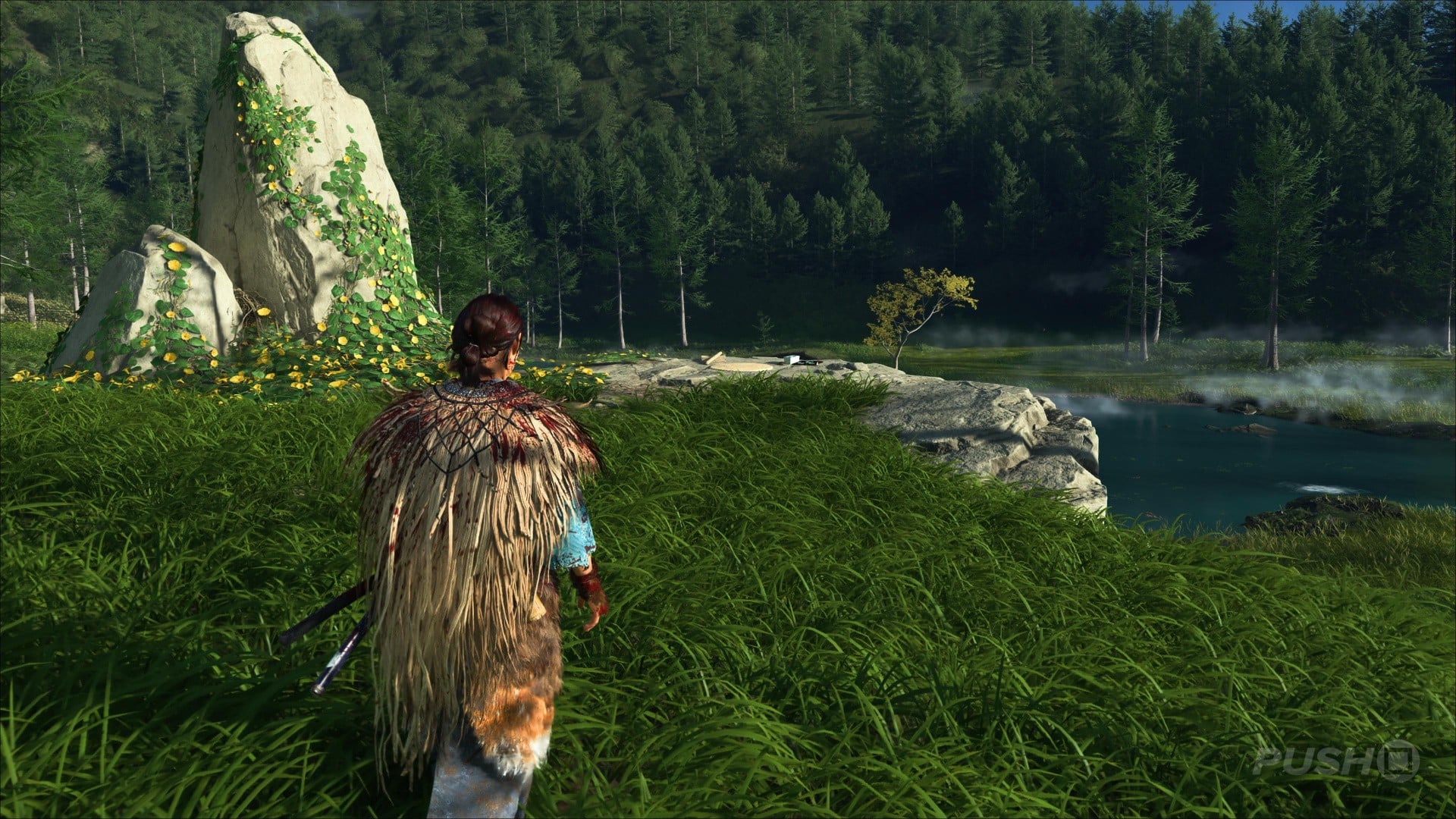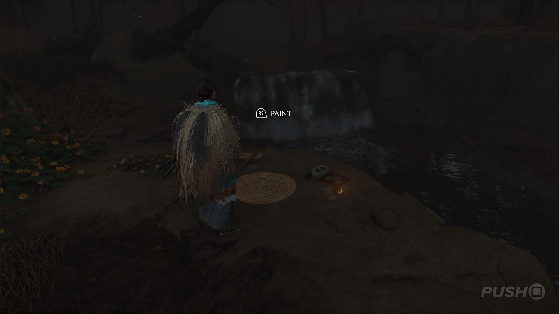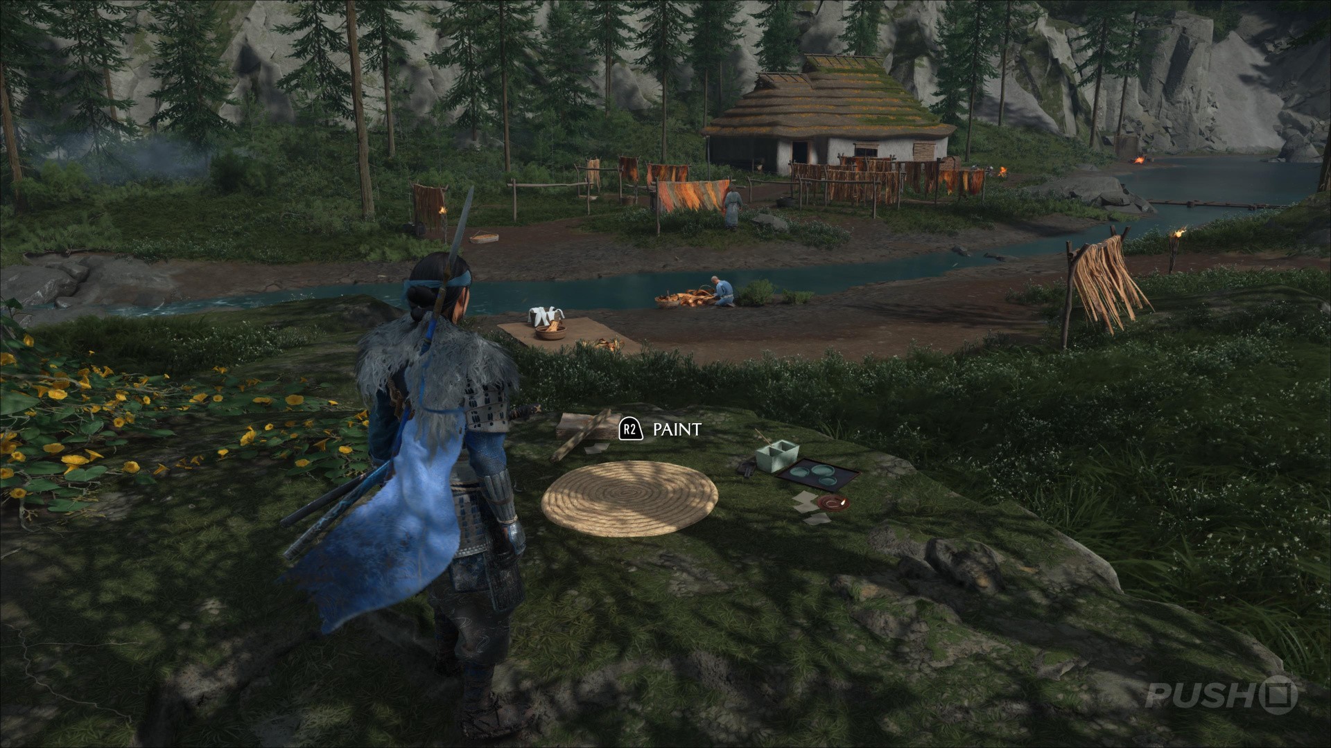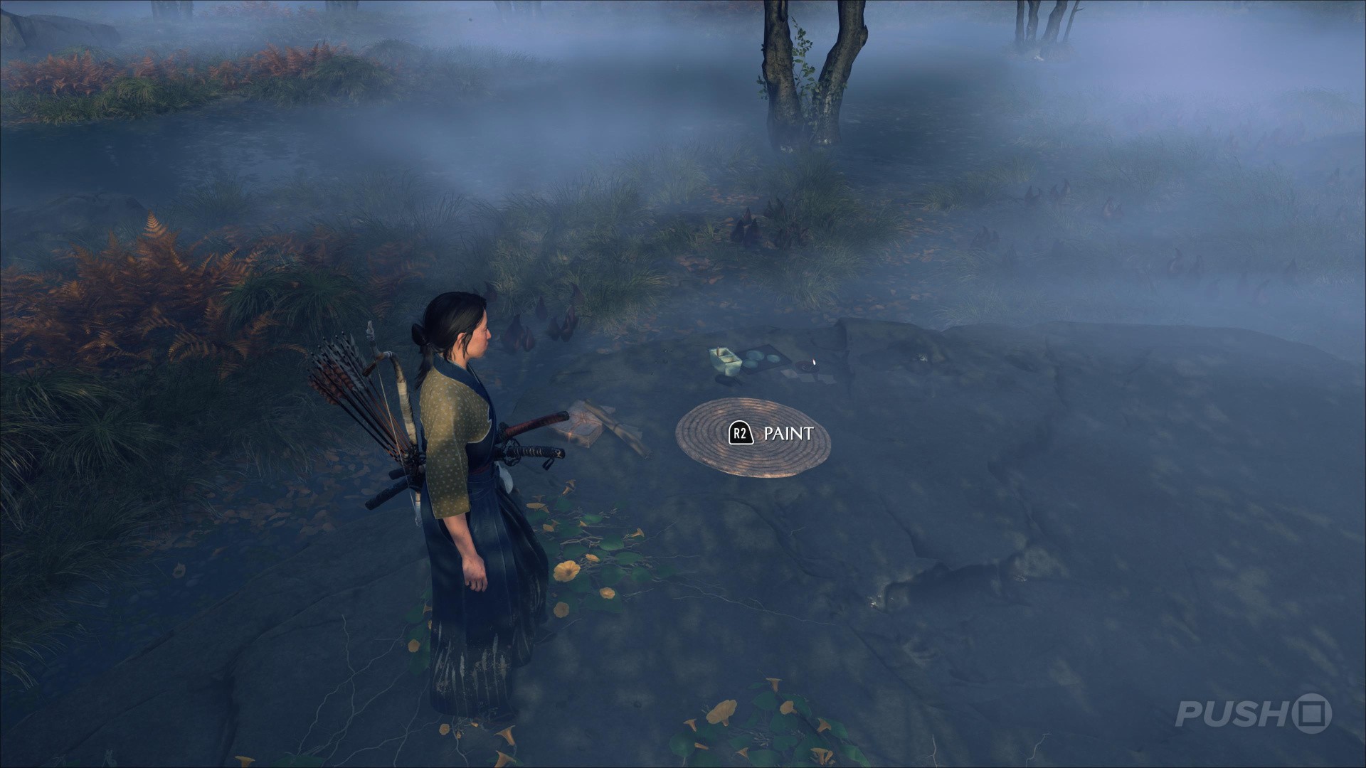 - In the southeastern corner of the region, where you find the Iwor Woods settlement, search next to the top of the waterfall to find the Sumi-E spot