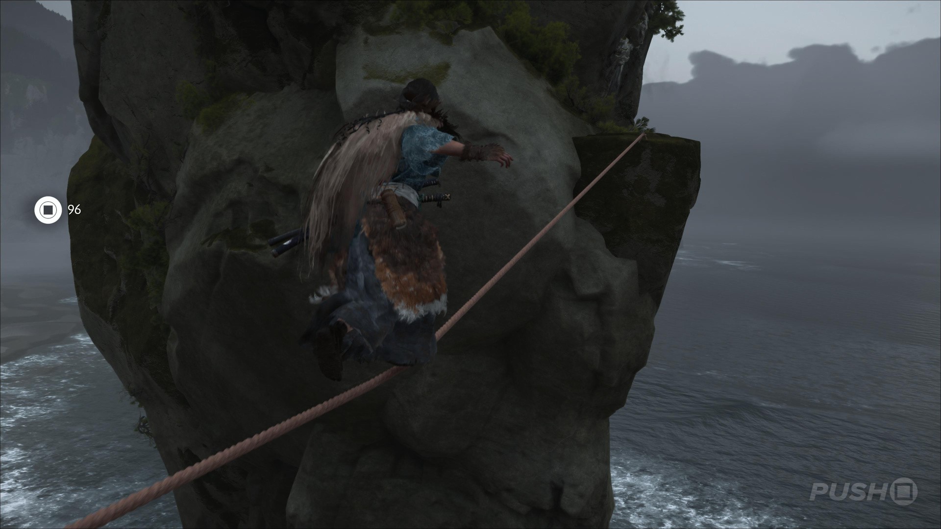 - Cross over to the bigger rock using the rope, and at the top, you can paint the Sumi-E