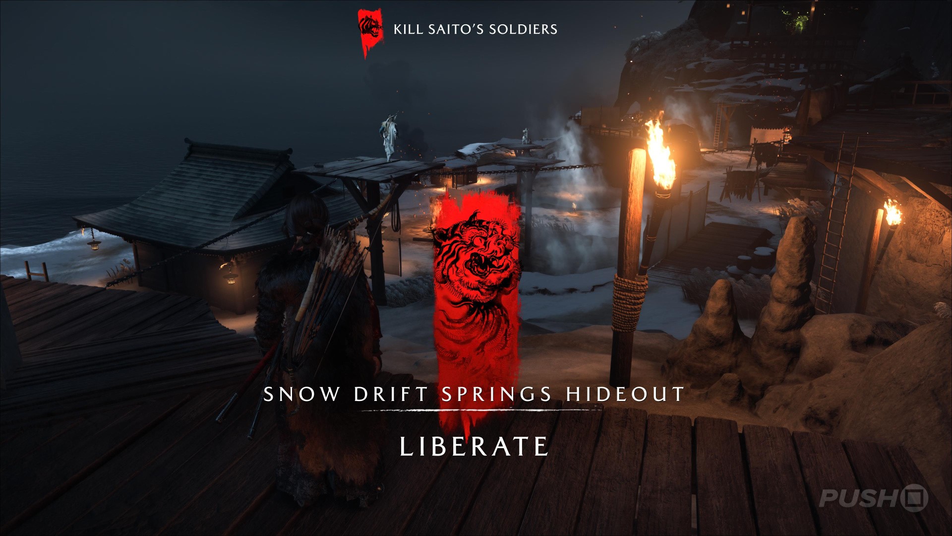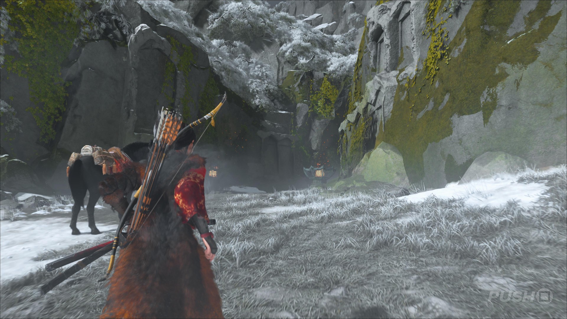 - To access this Yotei Six Camp, first look for the Snow's Blight Shrine to the right of the path along Teshio Coast