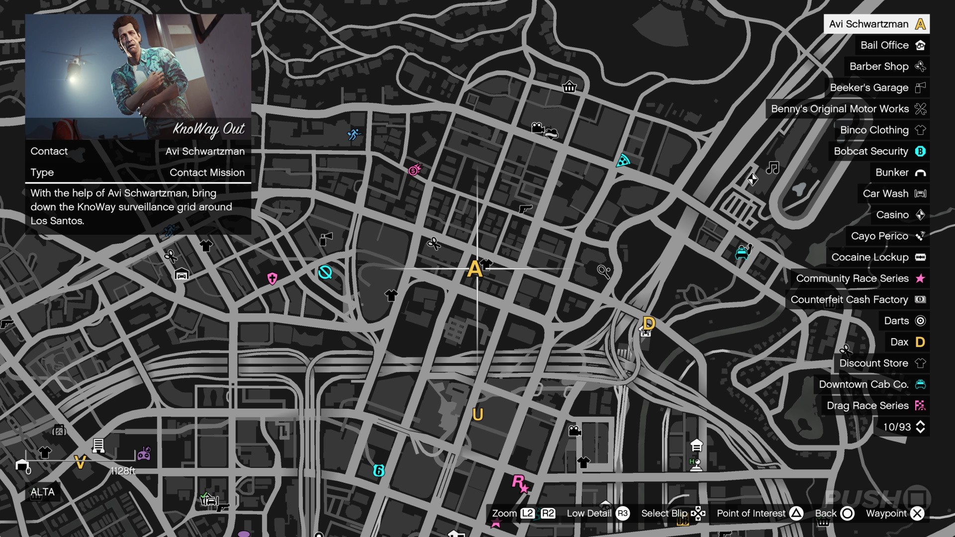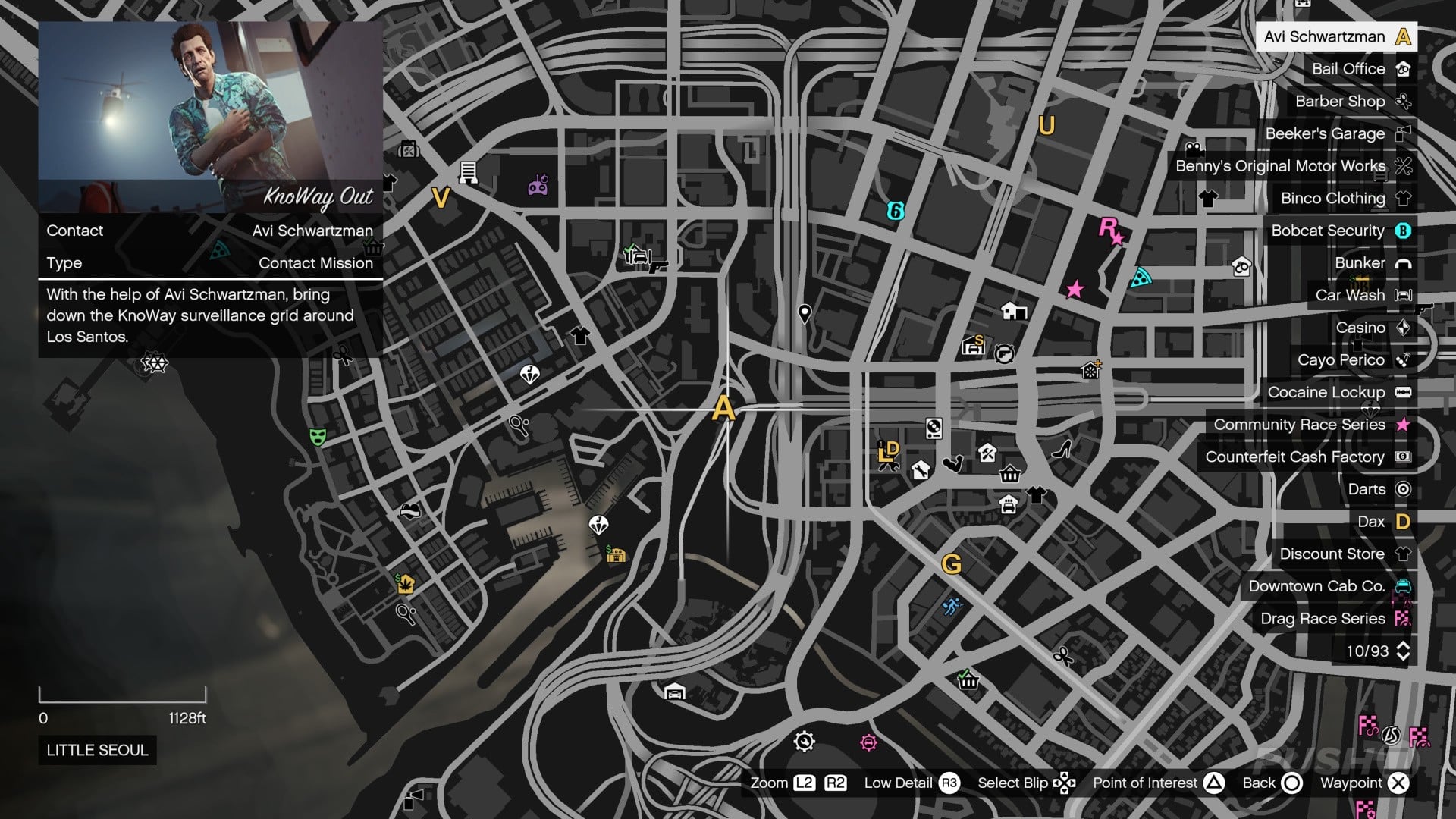 Load the map and set a way point to the 'A', labelled KnoWay Out. It's in Little Seoul, just west of Lamar's garage.