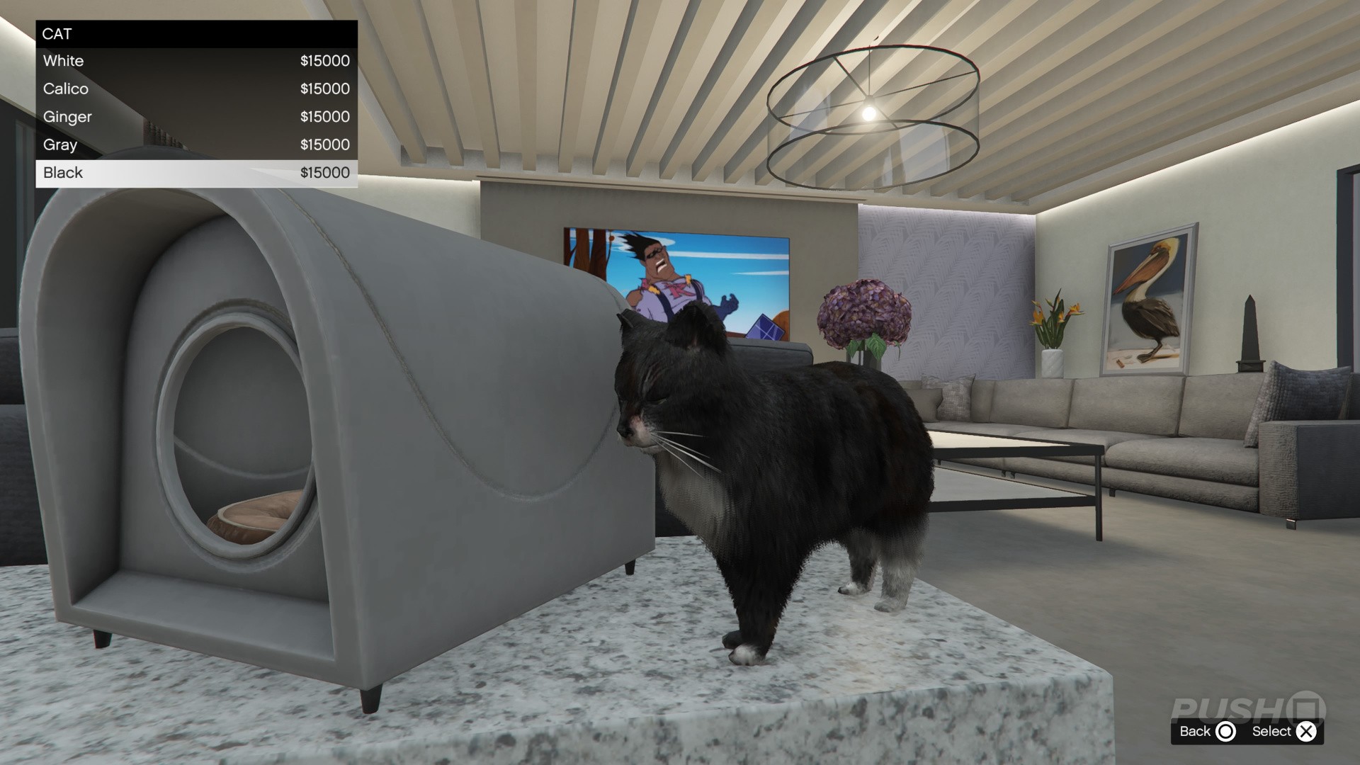 All available cats cost GTA$15,000, and come in the following colours: