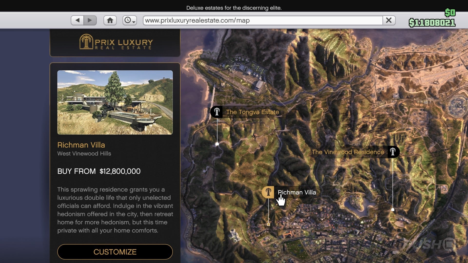 There are three mansions you can buy in GTA Online as part of the A Safehouse in the Hills update. You can purchase them from Prix Luxury Real Estate, which you'll find a sponsored link to on the EyeFind homepage.