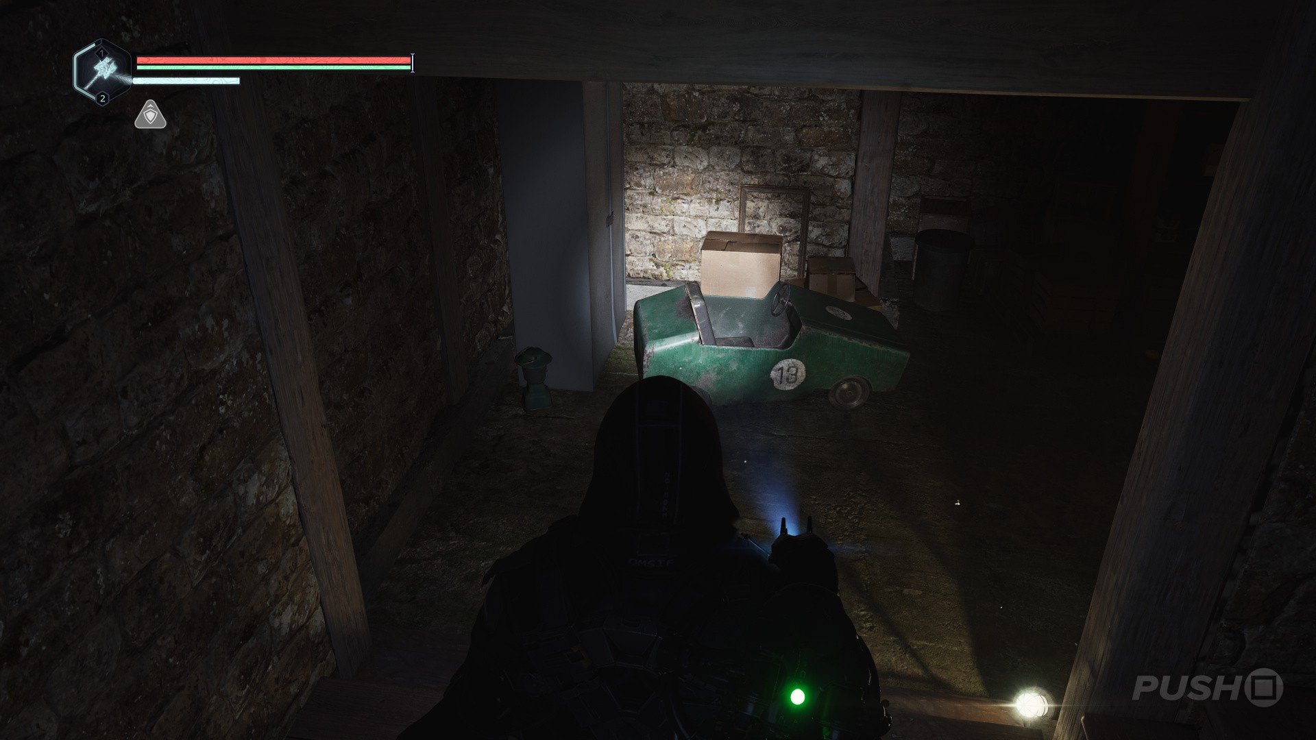 - Now head down to the basement. Take note of the toy car ahead; it seems like it's the same one from the first picture.