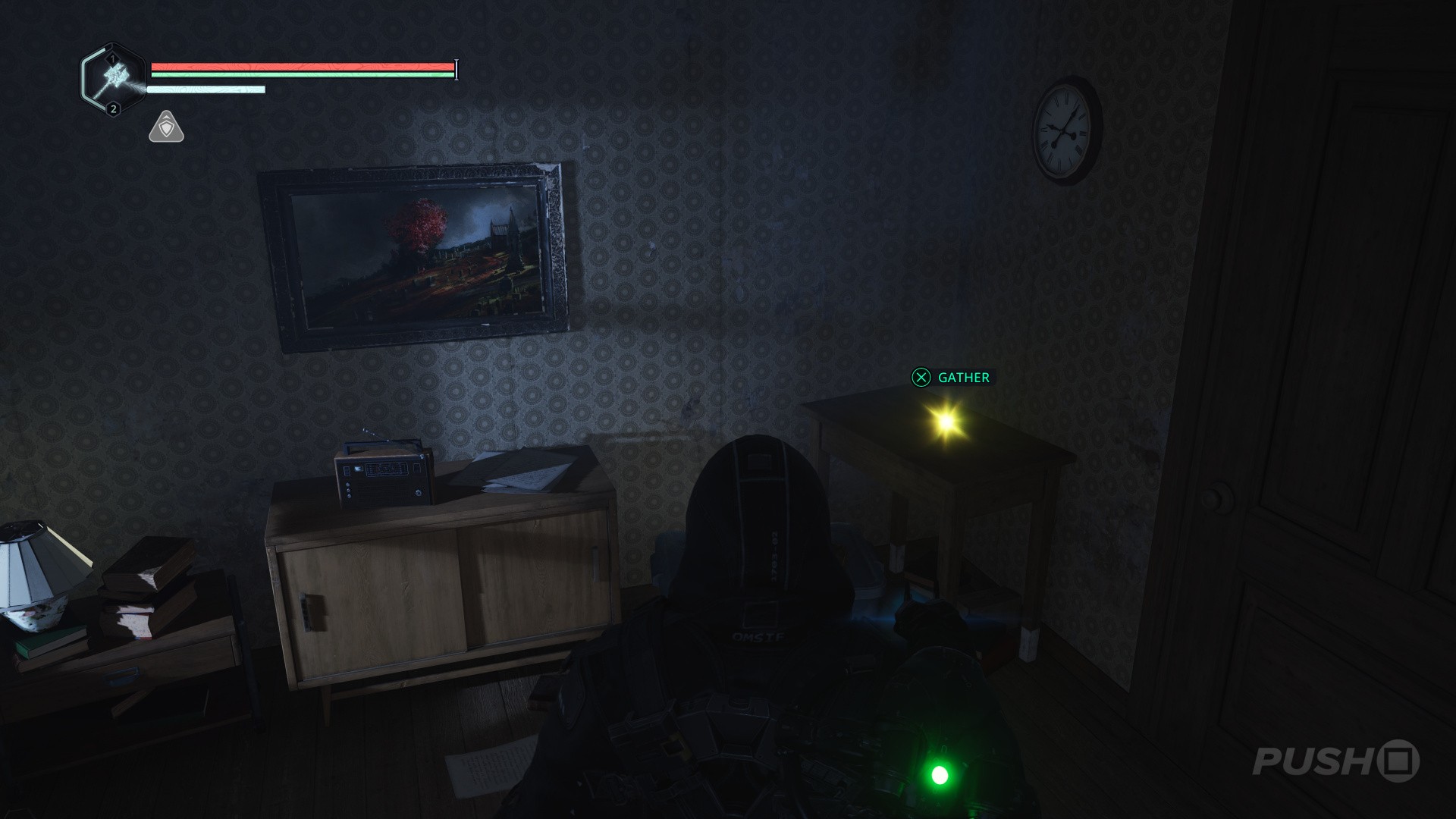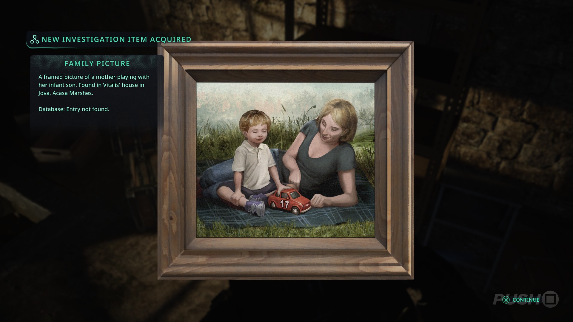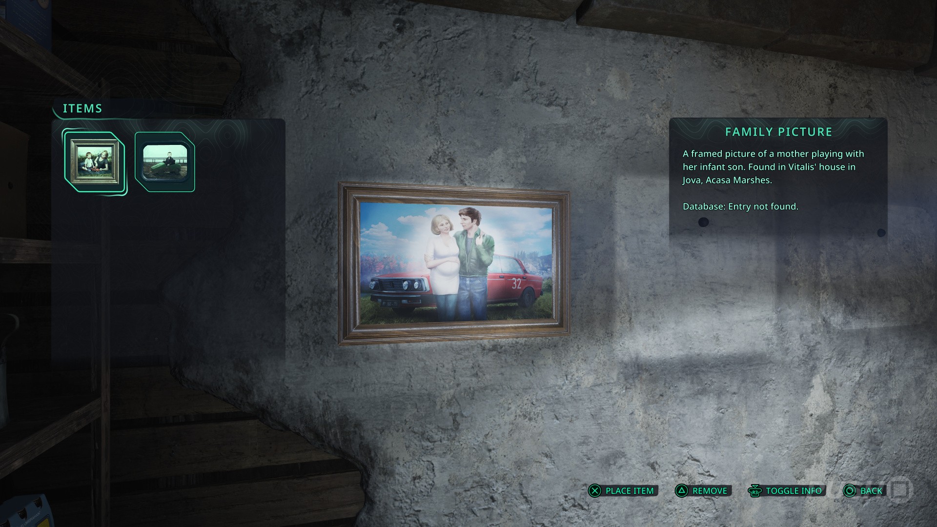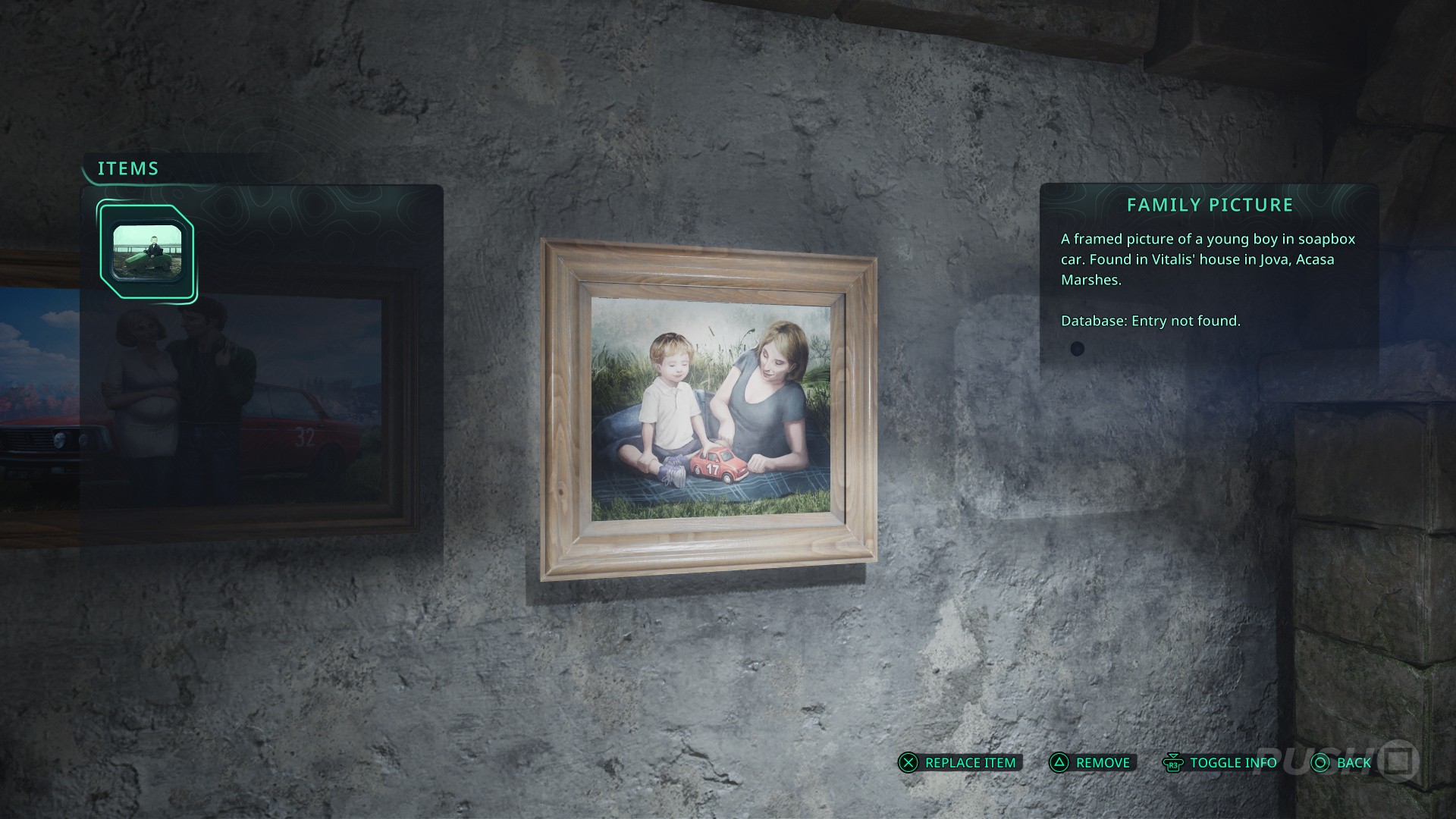 - Next, continue through the house and the through the next door on the left. To the right is another clue — a picture of Vitalis and his partner stood in front of a car.