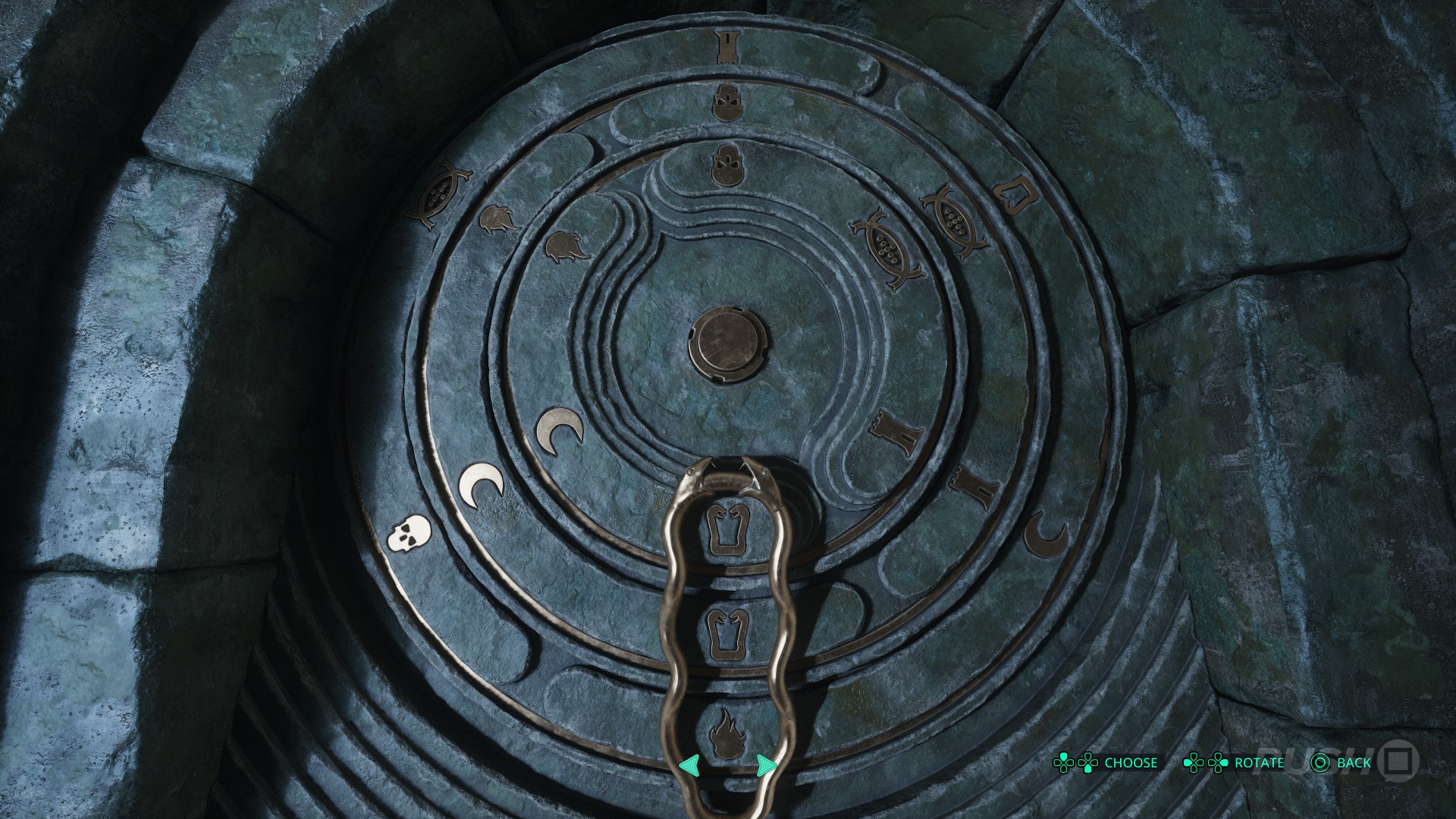 - Return to the door and interact with it. Going from the inside of the circle to the outside, the three symbols you need are: