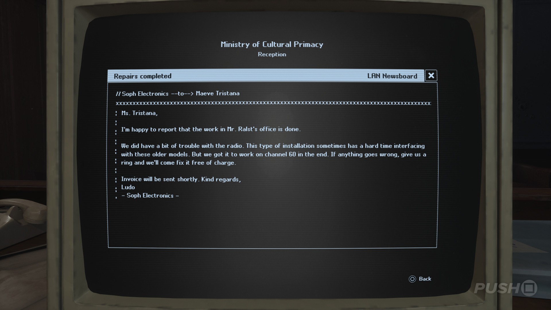 - You need to interact with the radio in Marton's office and tune it to channel 60 (AM).