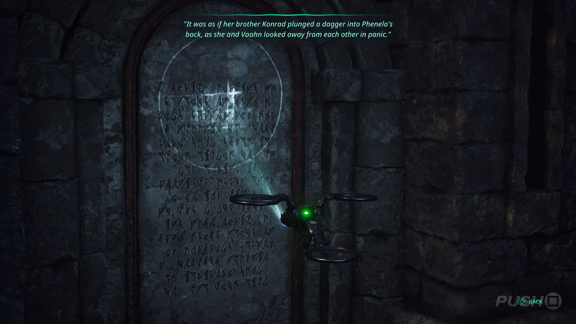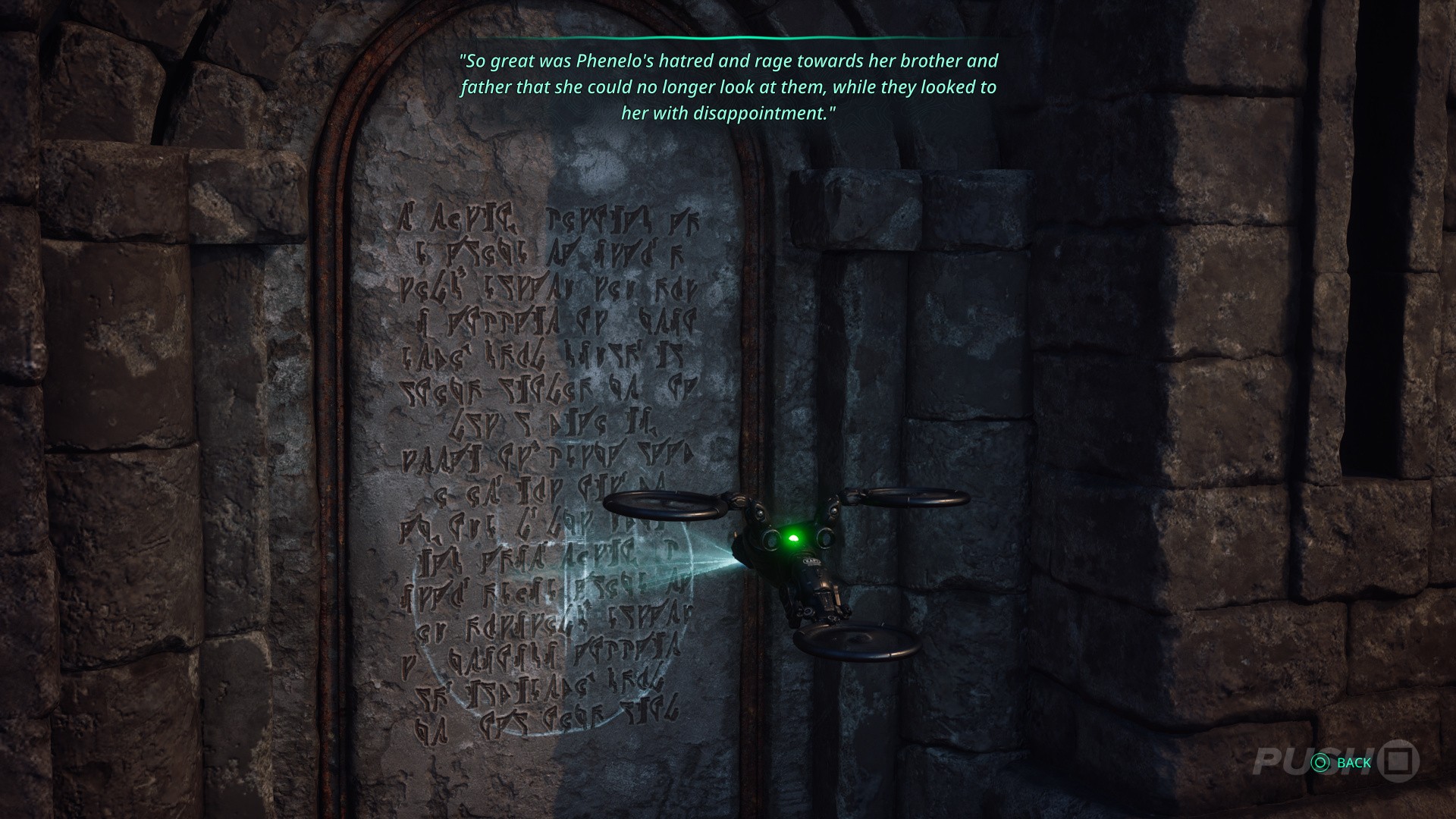 - Defeat the enemy, then scan the tablet: "So great was Phenelo's hatred and rage towards her brother and father that she could no longer look at them, while they looked to her with disappointment."