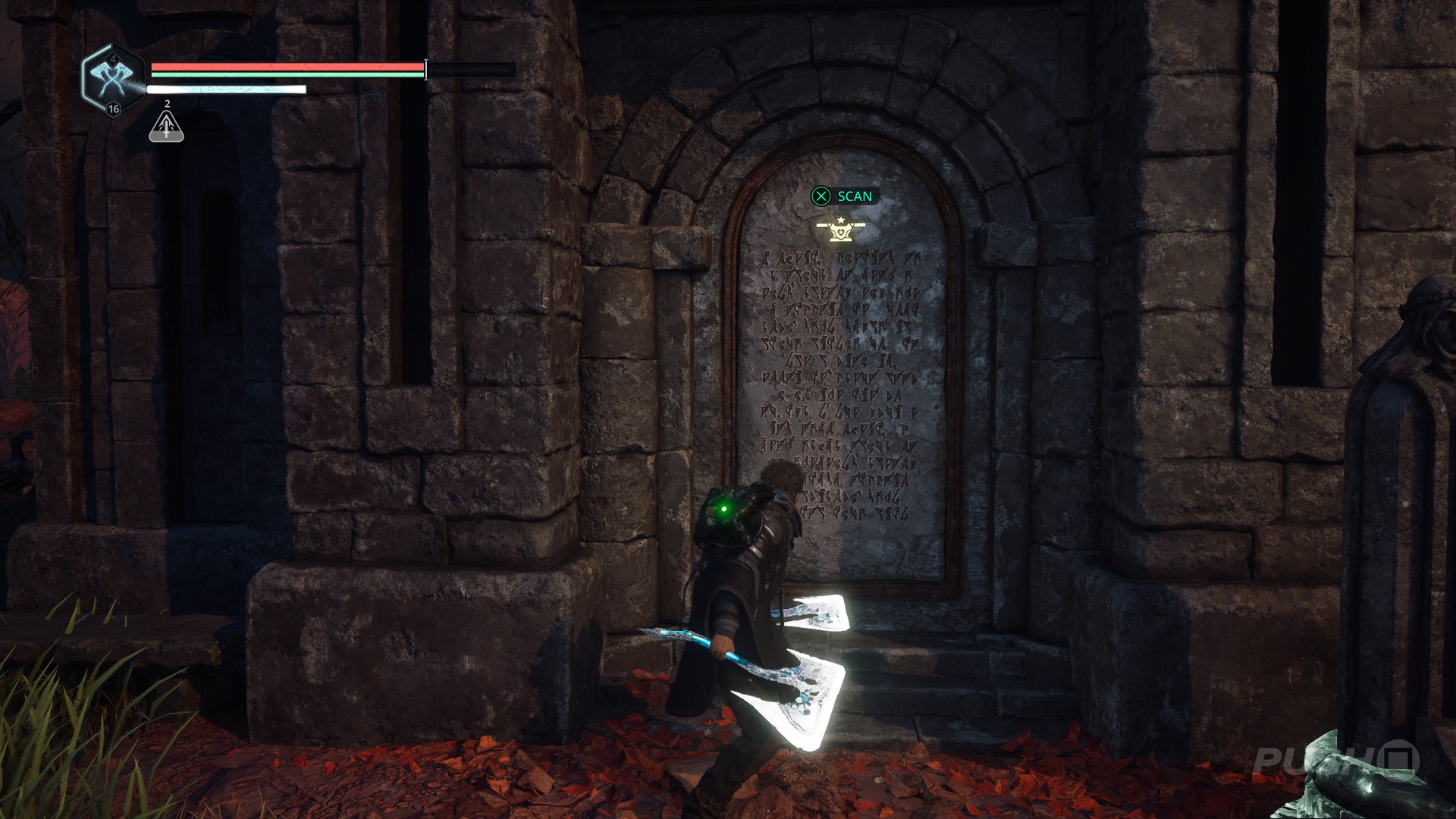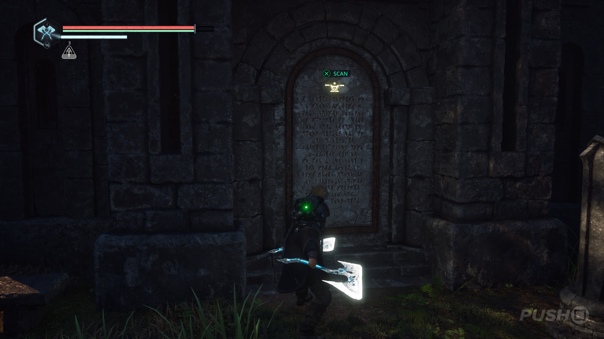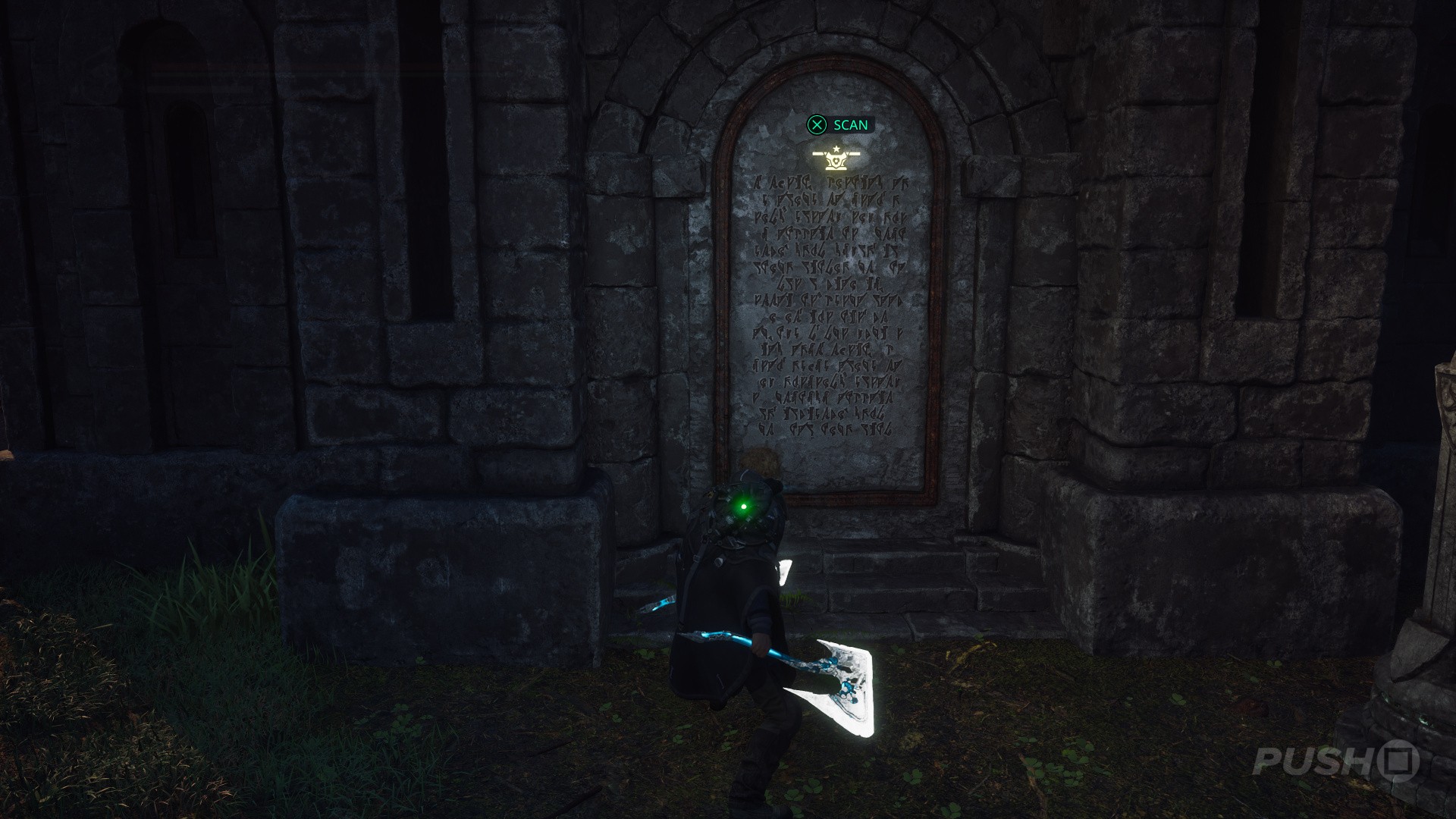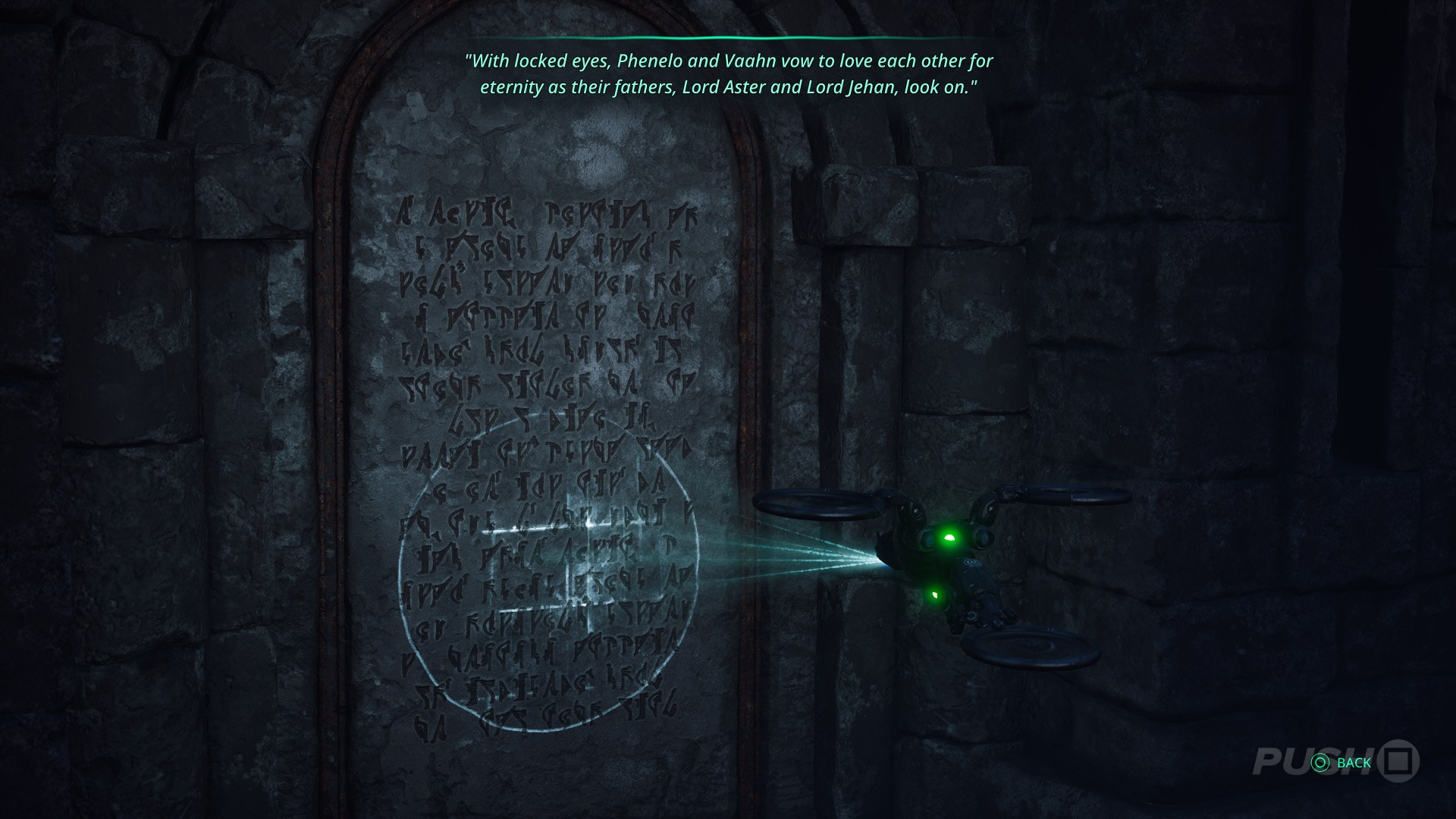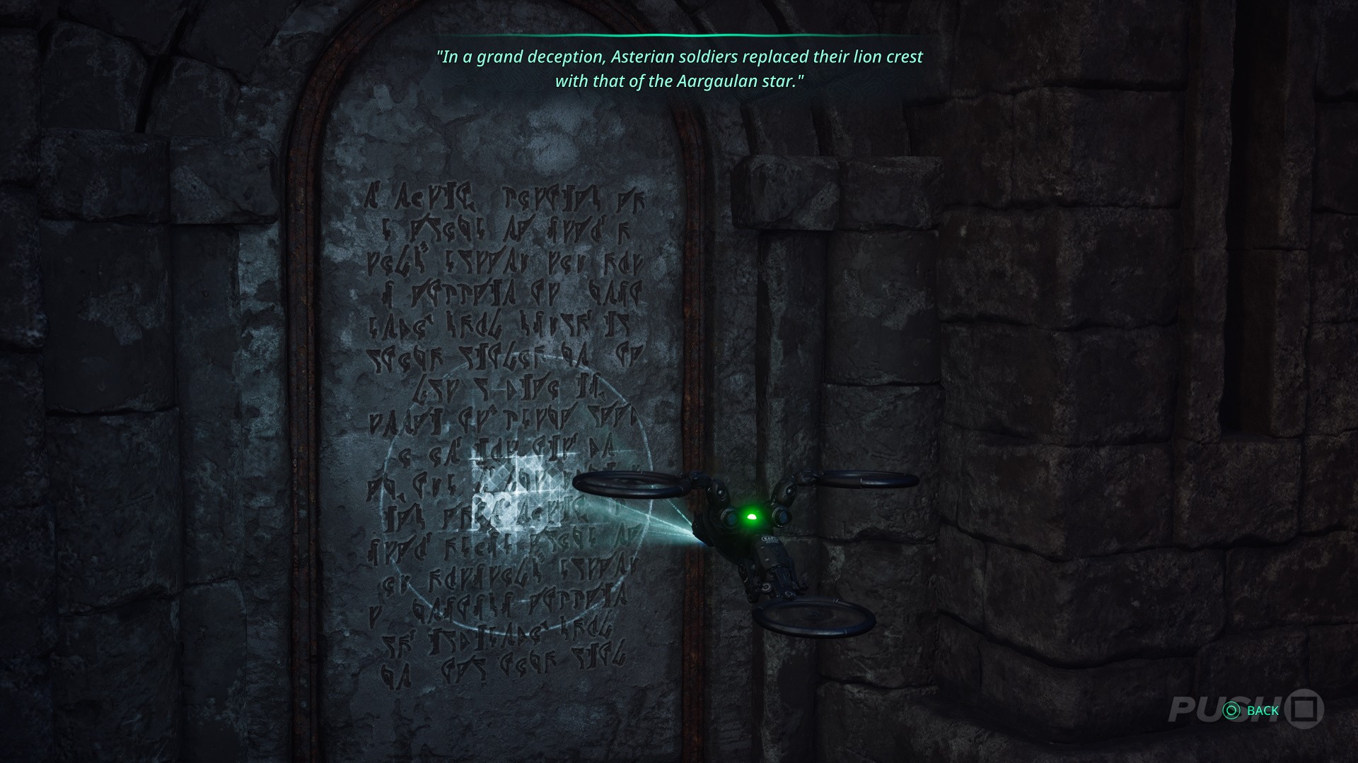 - Get rid of the enemies, then approach the crypt and scan the tablet: "In a grand deception, Asterian soldiers replaced their lion crest with that of the Aargaulan star."