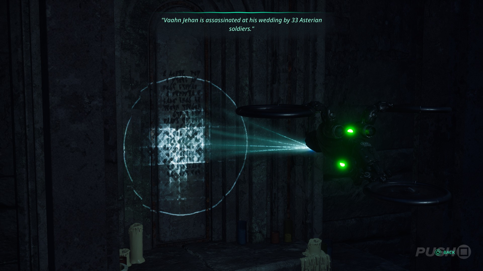 - Scan the tablet inside: "Vaahn Jehan is assassinated at his wedding by 33 Asterian soldiers."