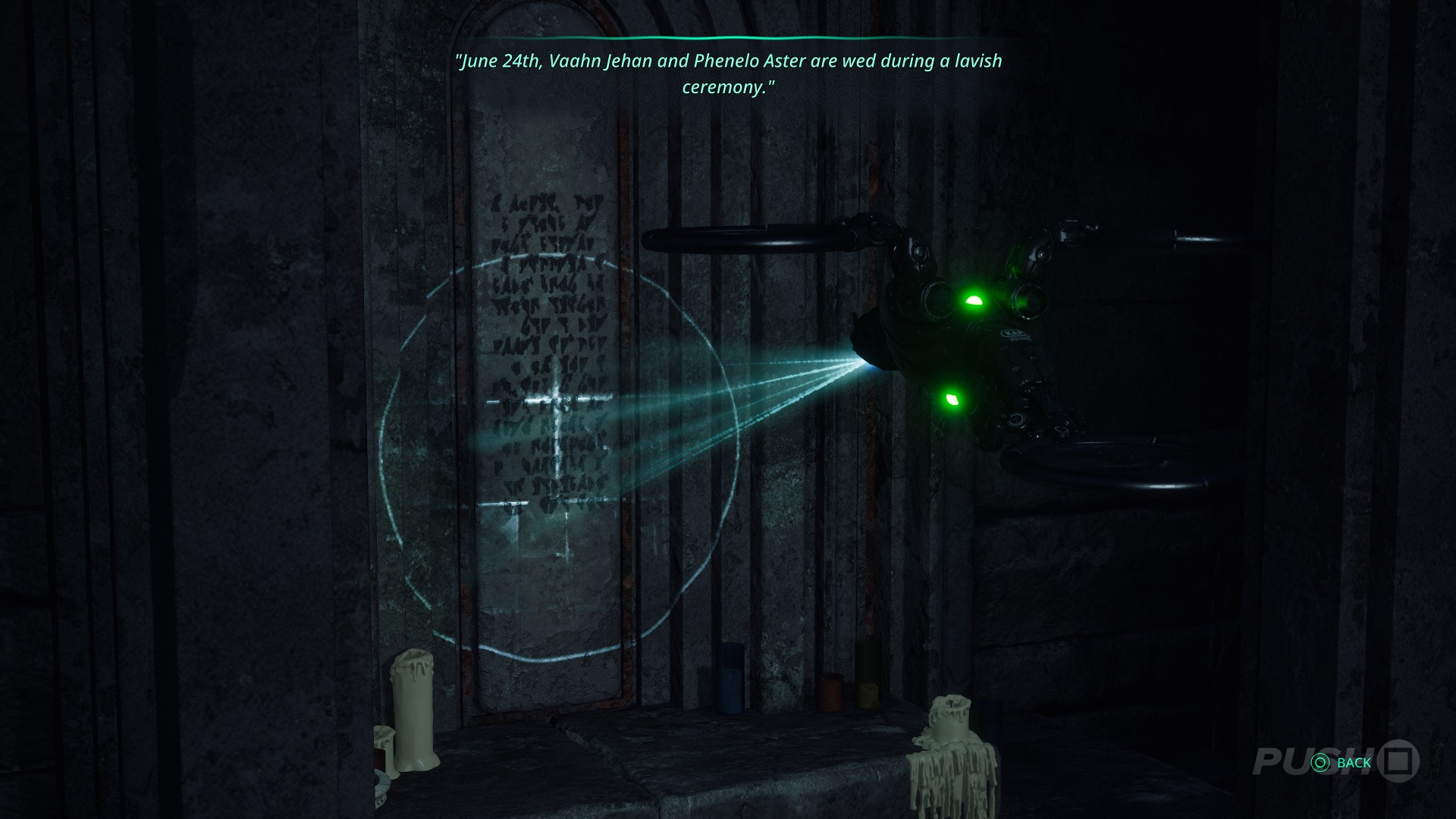 - The crypt will open; scan the tablet inside: "June 24th, Vaahn Jehan and Phenelo Star are wed during a lavish ceremony."