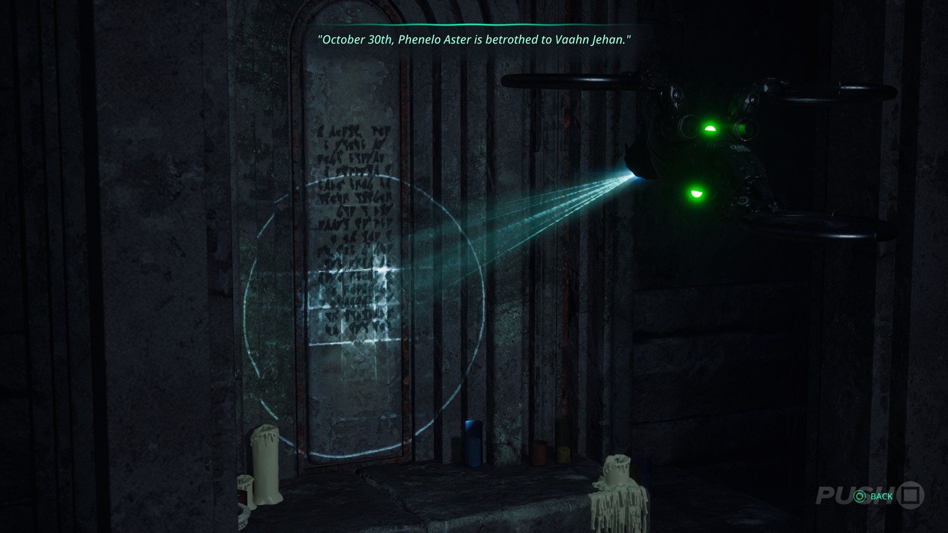 - Inside is another tablet to scan: "October 30th, Phenelo Aster is betrothed to Vaahn Jehan." You'll need this date for the main puzzle.