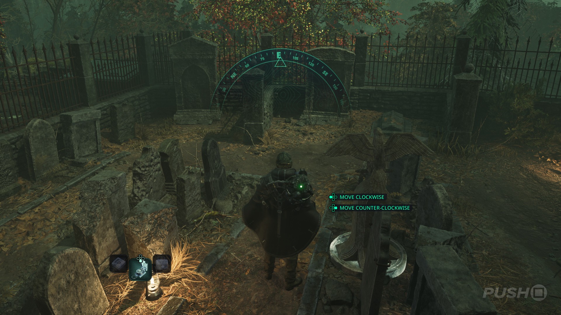 - Back in the graveyard, you need to find all six of the eagle statues and turn them all so they're facing east. Use your compass to work out which direction that is.