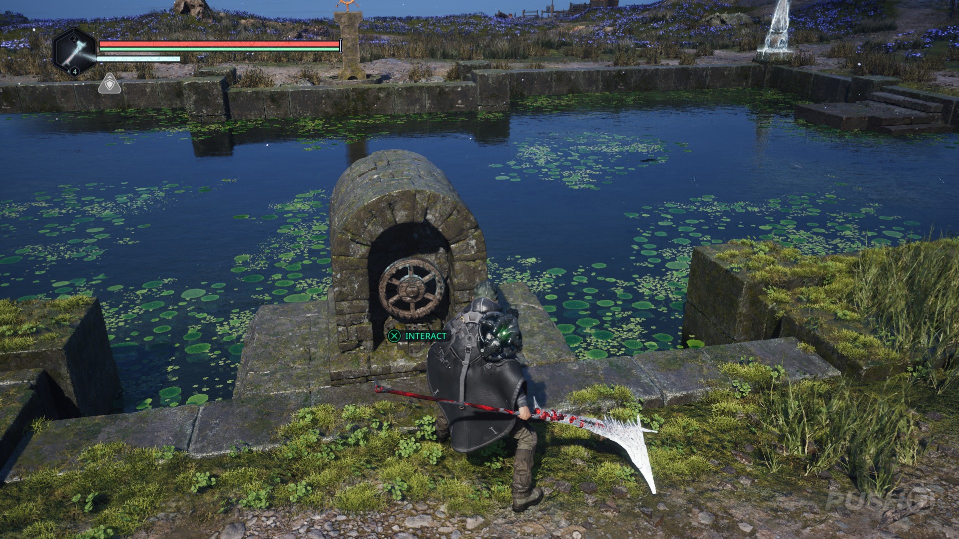 - Go left to the pool and interact with the gear, using the spindle. This will lower the water of the pool.
