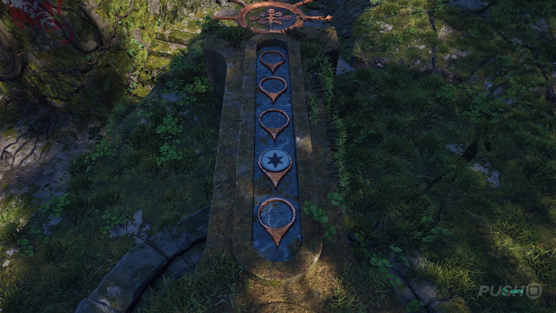 - The solution can be discovered in the surrounding area; there are more pillars, topped with a circular crest, that will tell you the order when you put them all together.