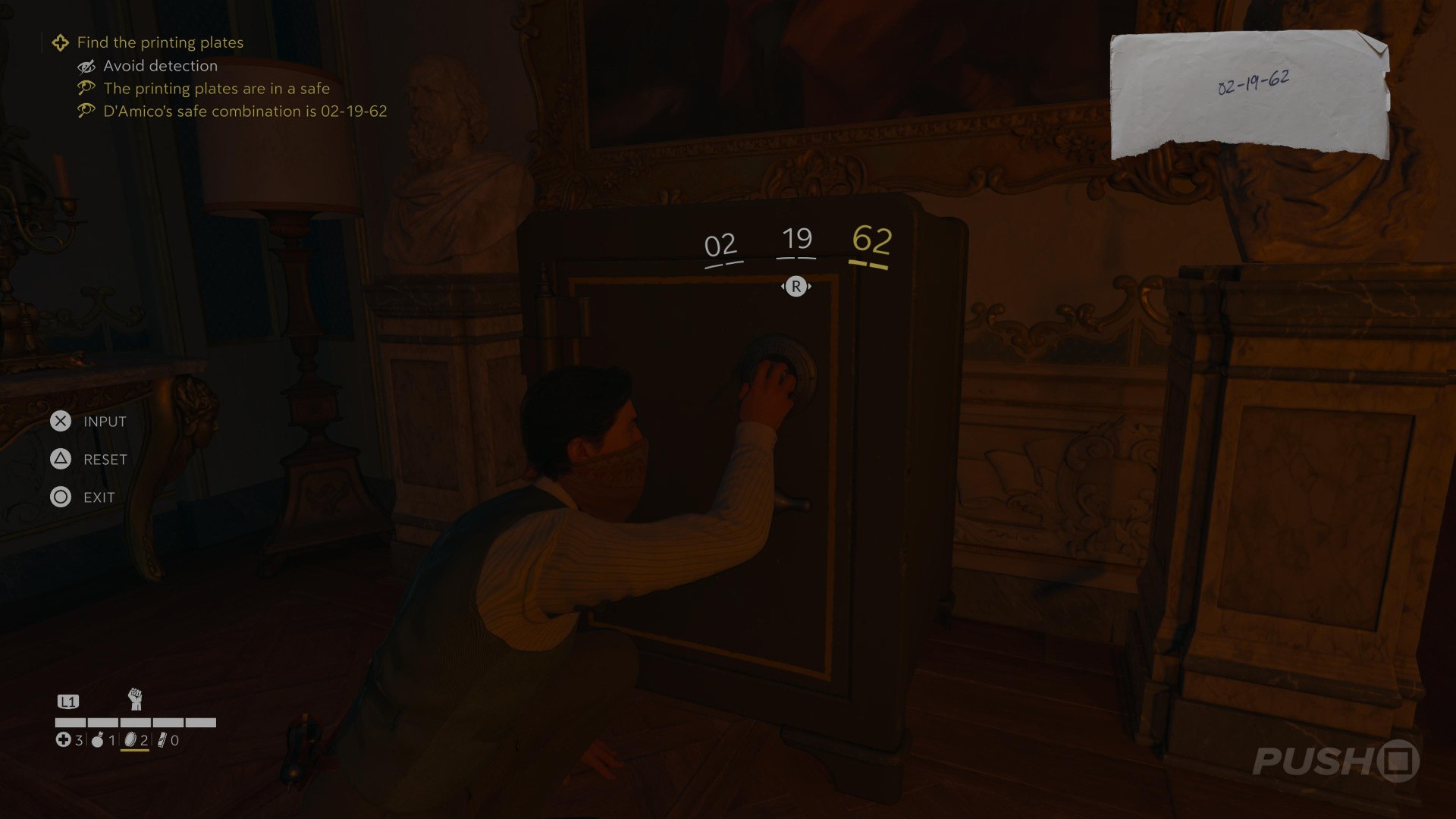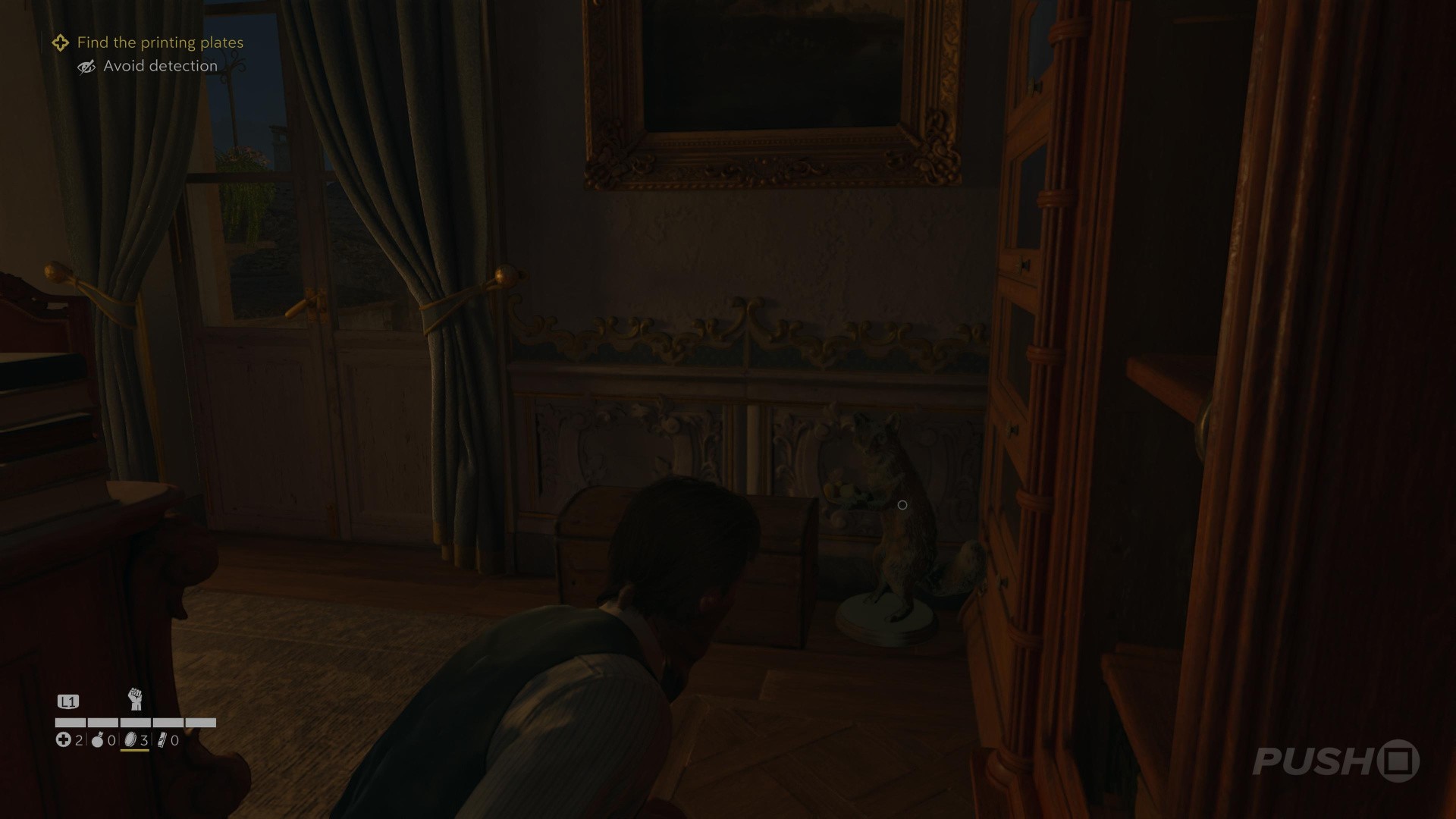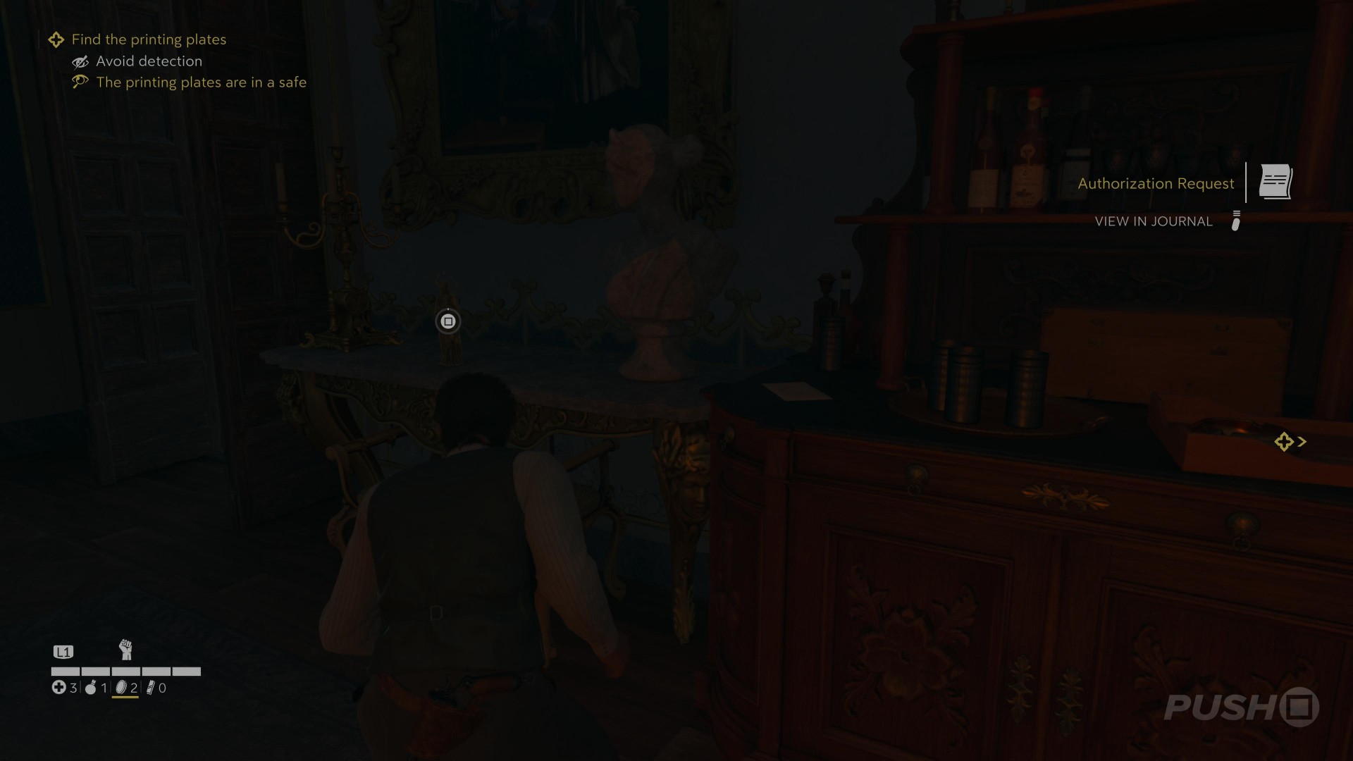 - After learning about the counterfeit cash printing plan, head in the room to the left once you take control