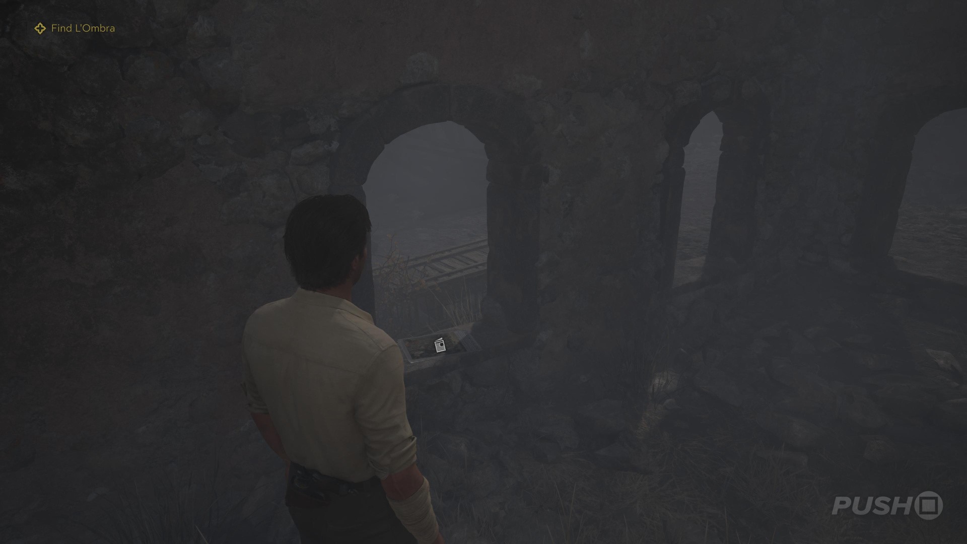 - When you stop tracking L'Ombra by car, there's a dilapidated building to the left of the area you enter by foot