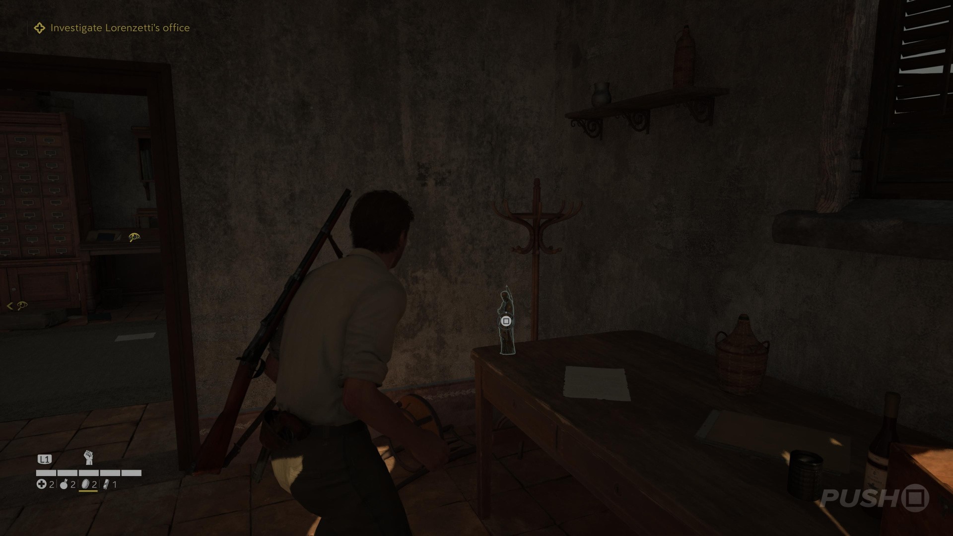 - When you're trying to find a way into the Lorenzetti's office, look around the rear of the entrance