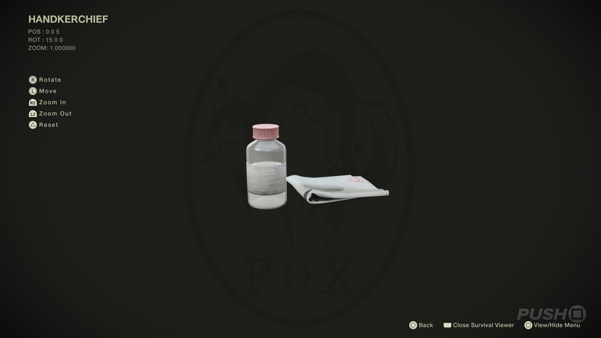 A handkerchief soaked in anesthetic. Can be used to put enemies to sleep by grabbing them using CQC.