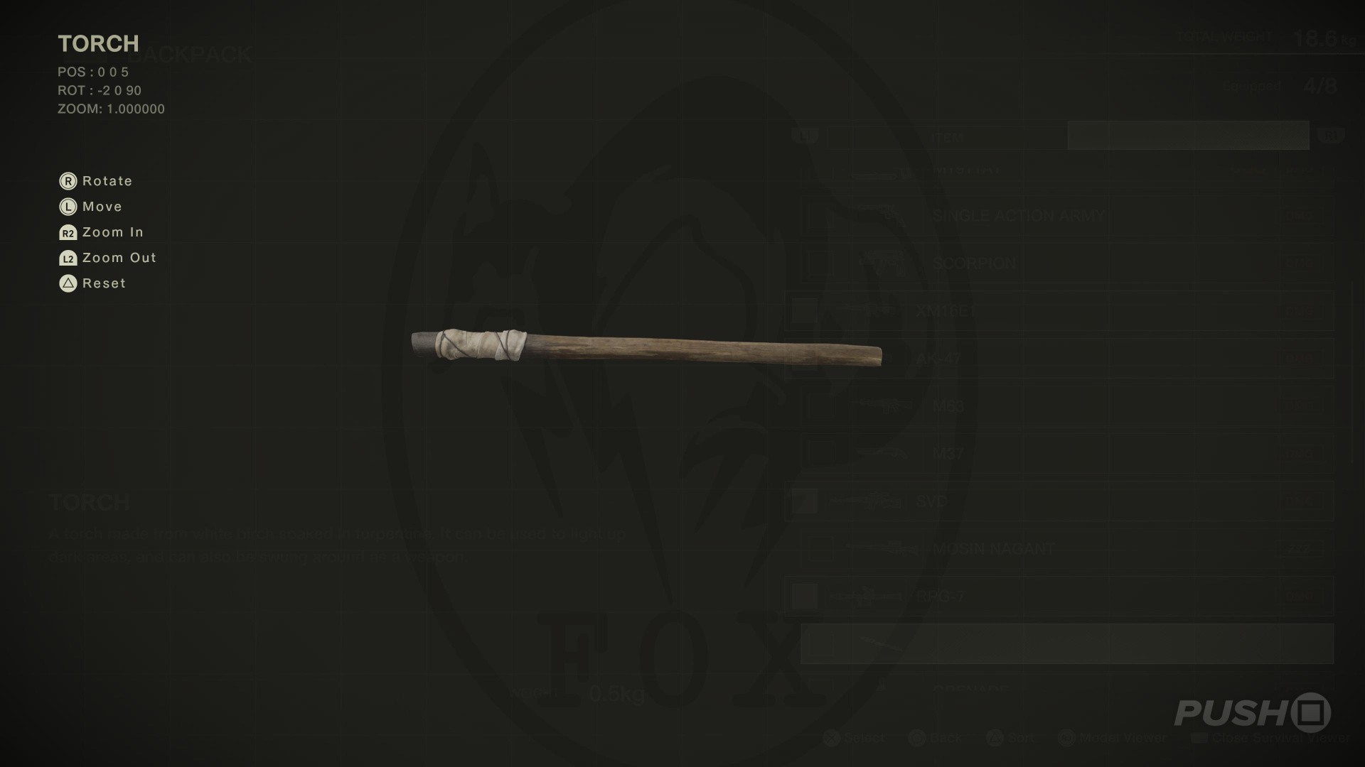 A torch made from white birch soaked in turpentine. It can be used to light up dark areas, and can also be swung around as a weapon.