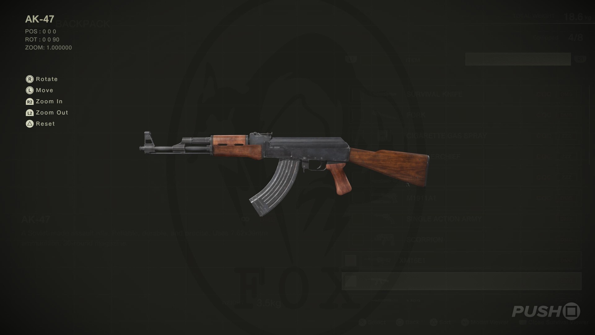A Soviet-made assault rifle. Reliable, durable, and precise. Uses 7.62x39mm ammunition. 30-round magazine.