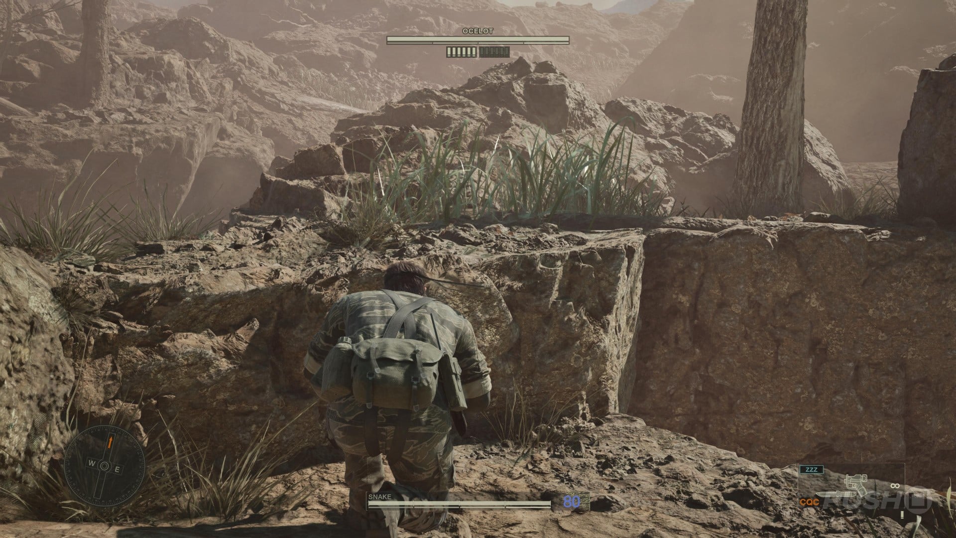 - Go all the way to the left side of the Ocelot boss fight arena and look across to his side