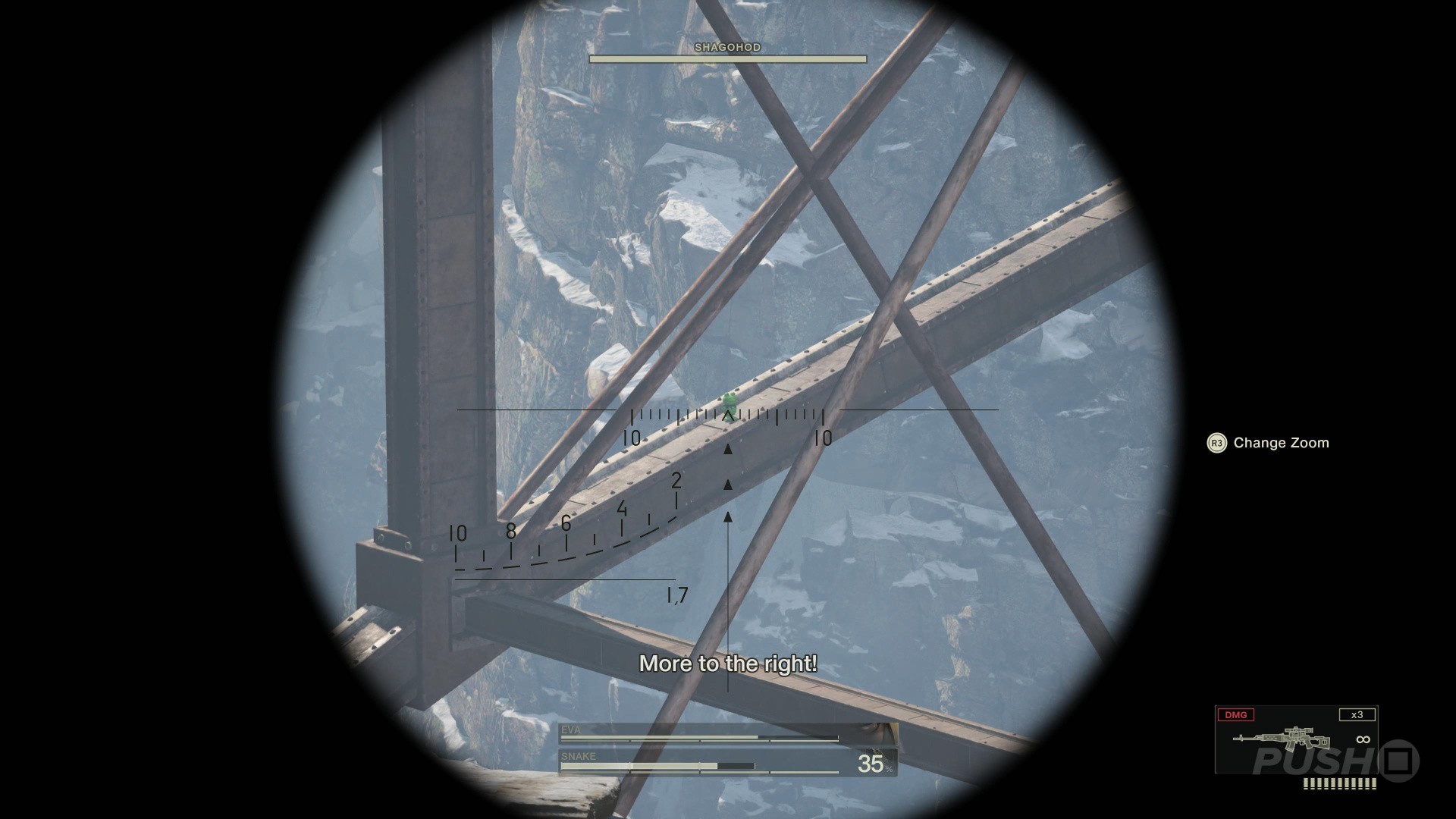 - When you gain control of Snake, he'll be lying down, looking at the bridge