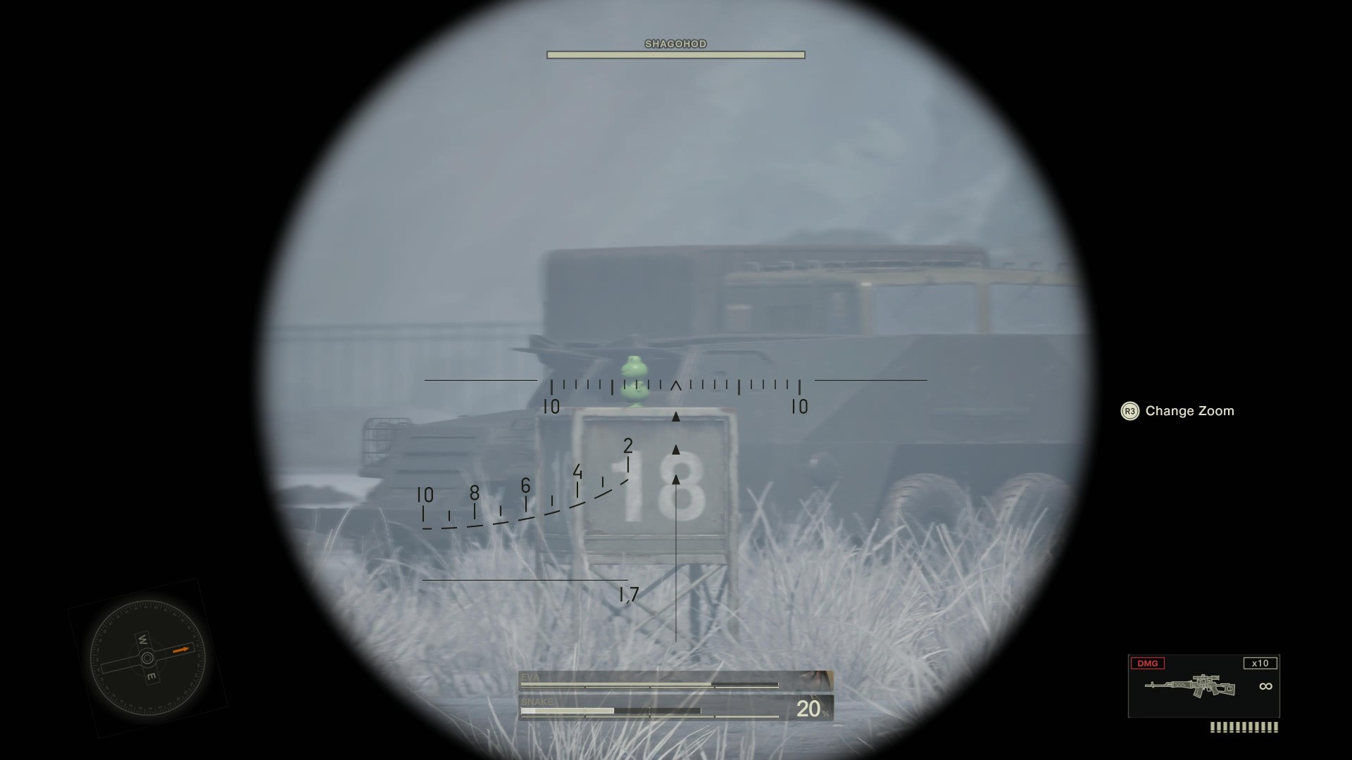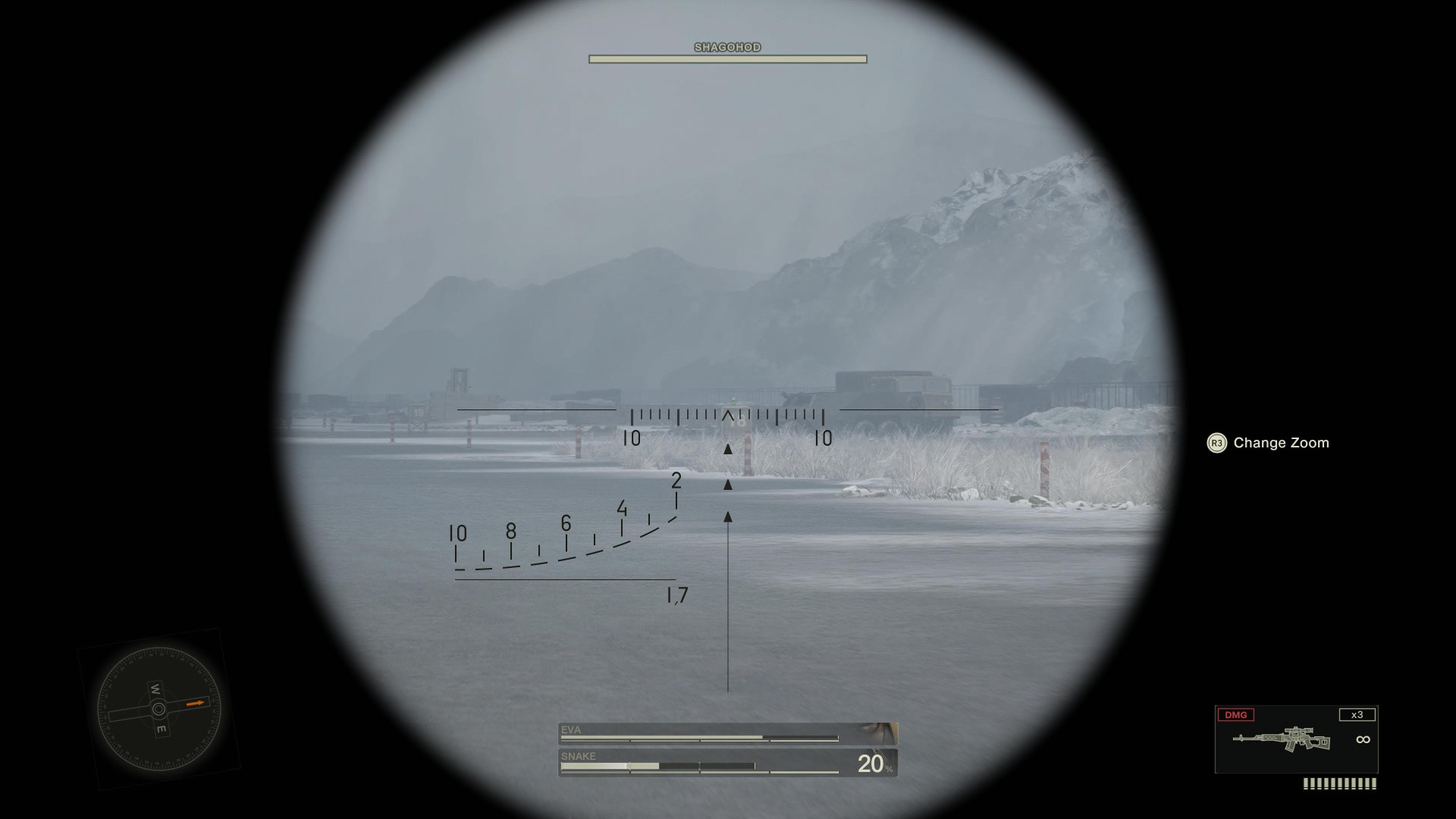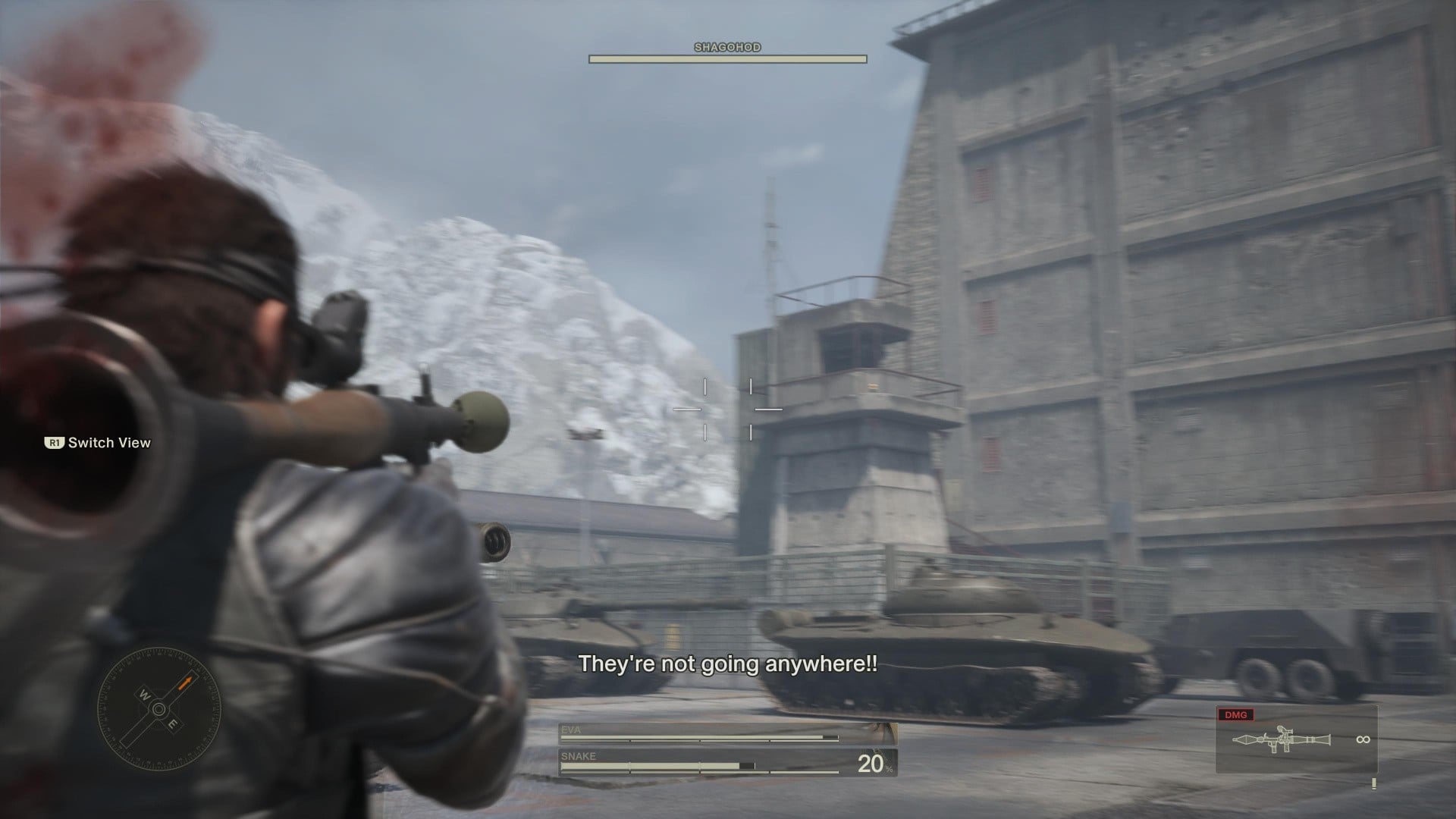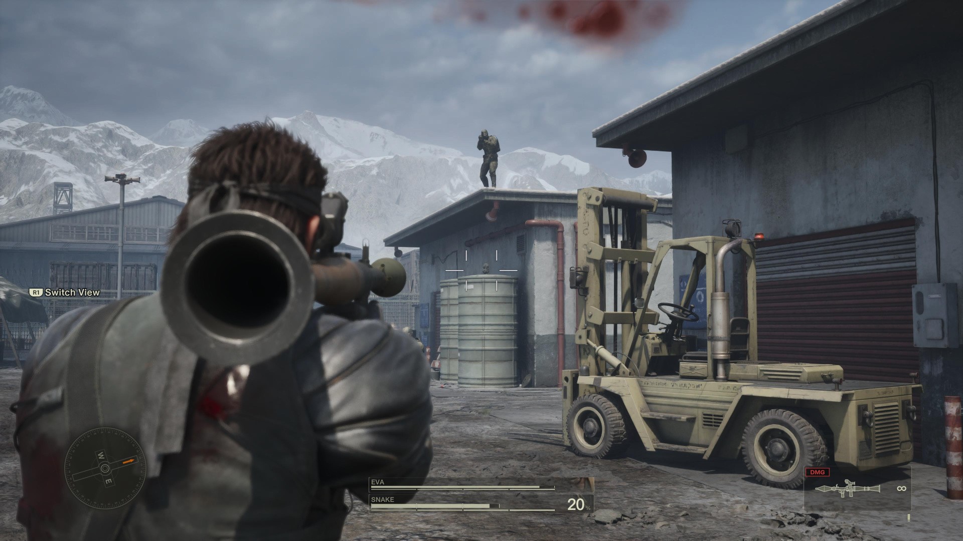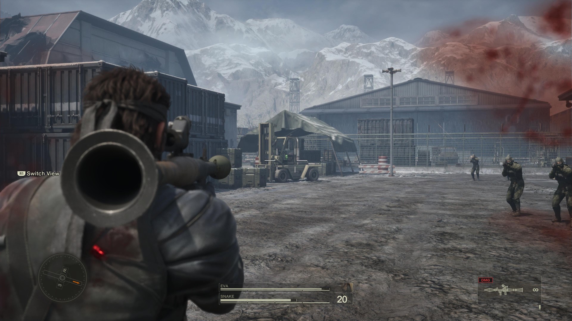 - EVA will stop and let you shoot at guards, with some on the ground and others in the building above