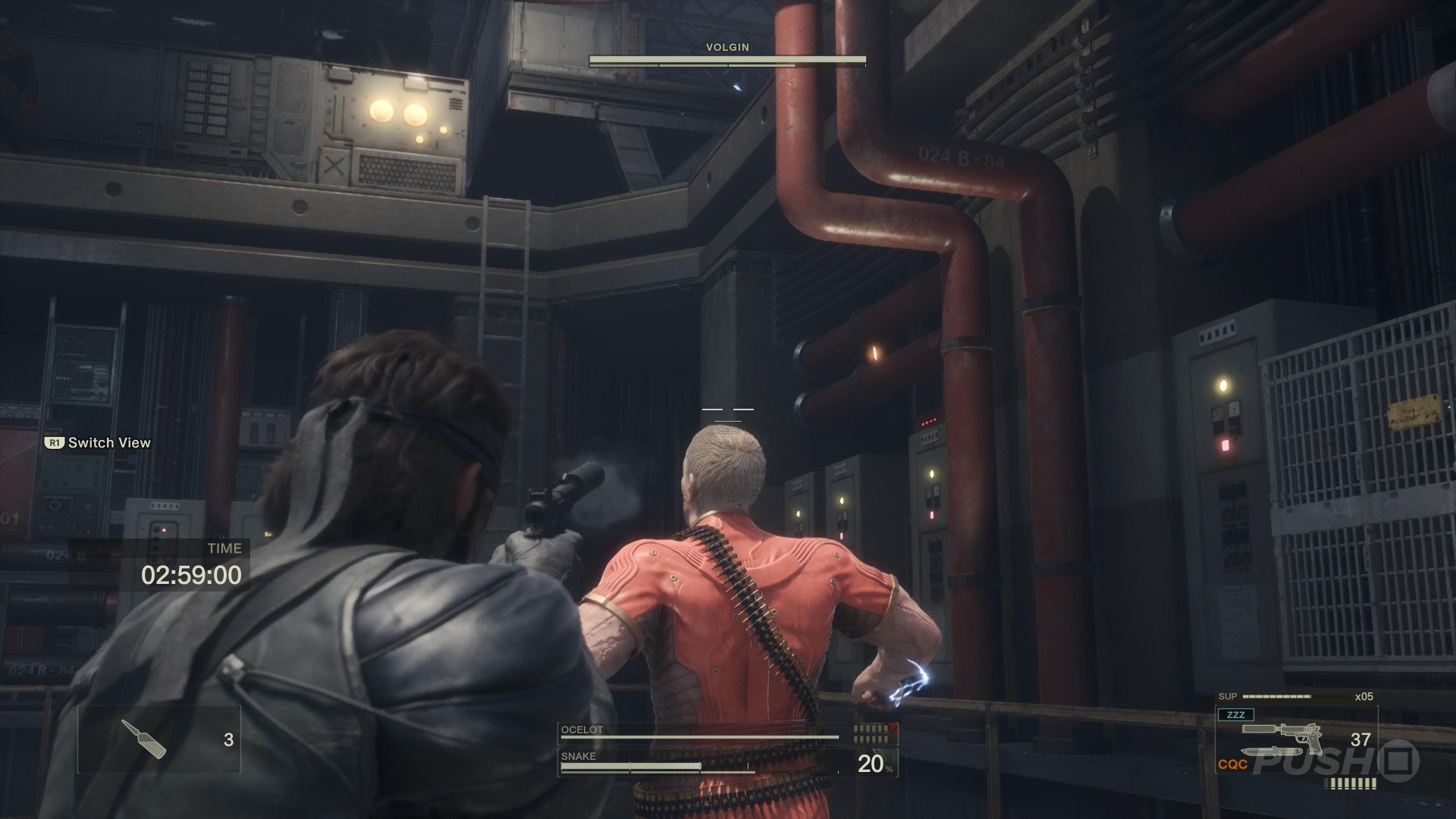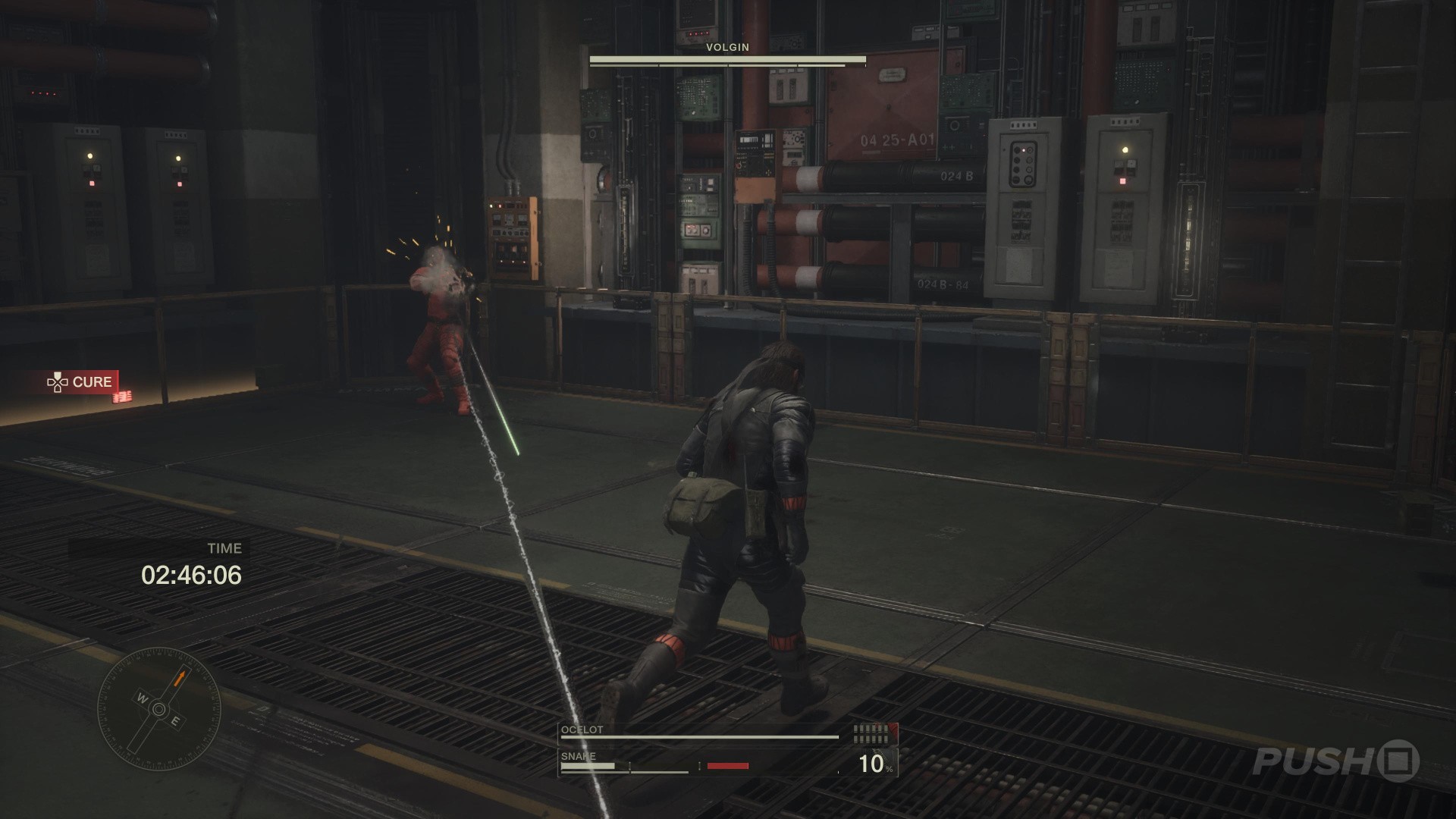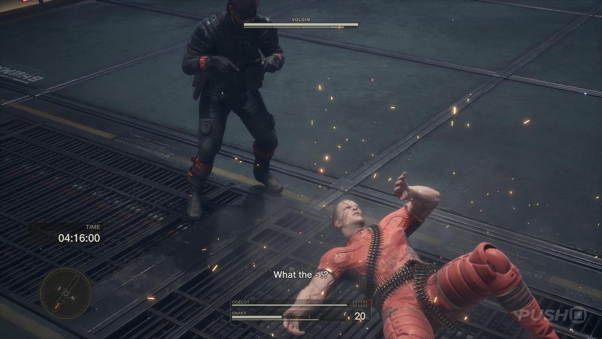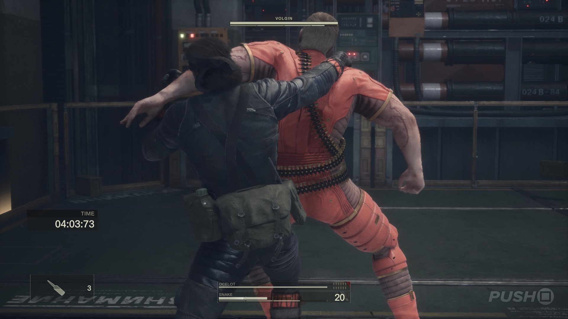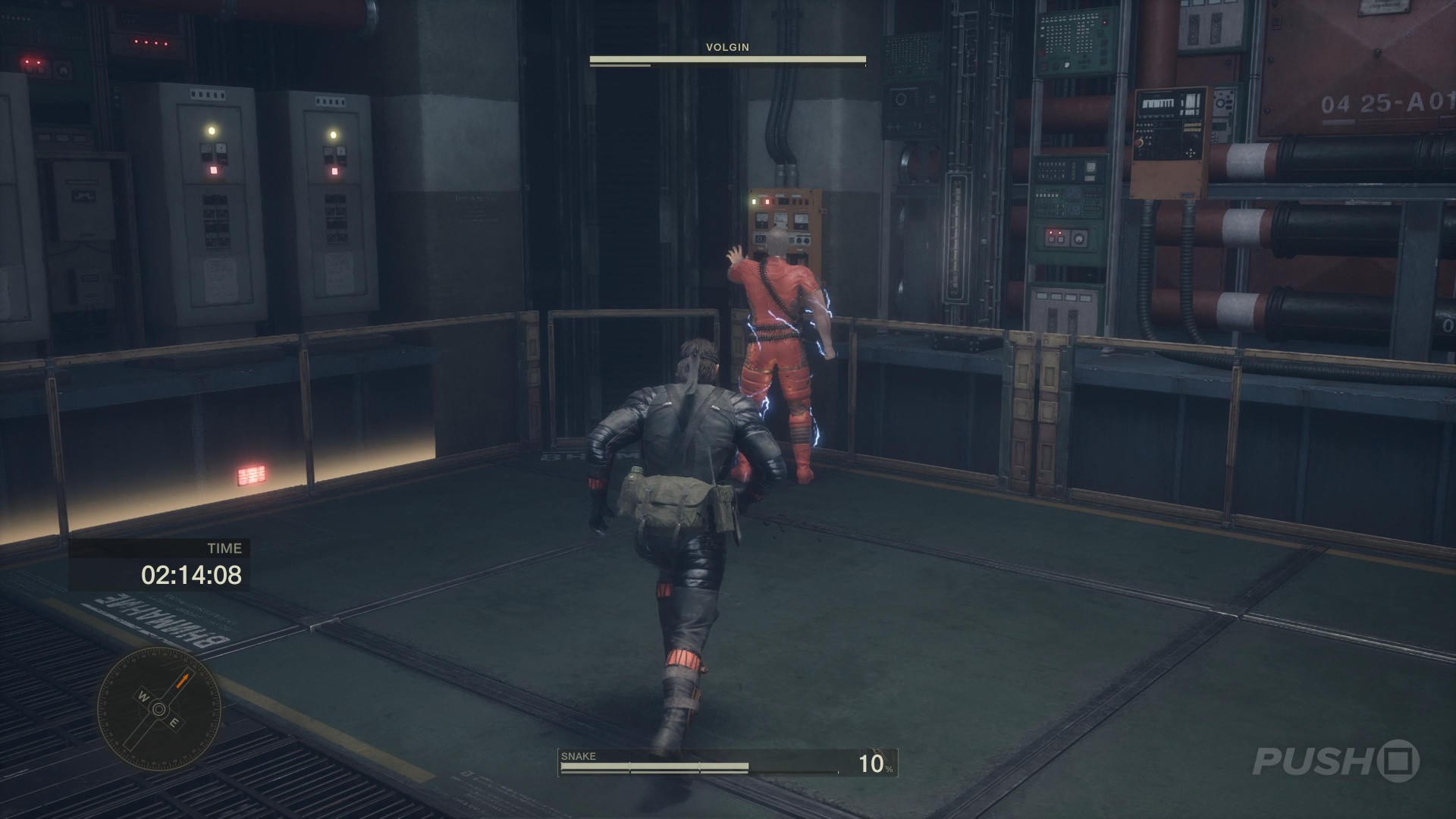 When Volgin reaches half health (either through damage or stamina), a cutscene will play and Ocelot will leave the fight. During this second phase, Volgin gains new attacks, like a lightning explosion and doubling up on his standard electrical beams. This can again be avoided by either crouching down fully or running away from their damage paths.