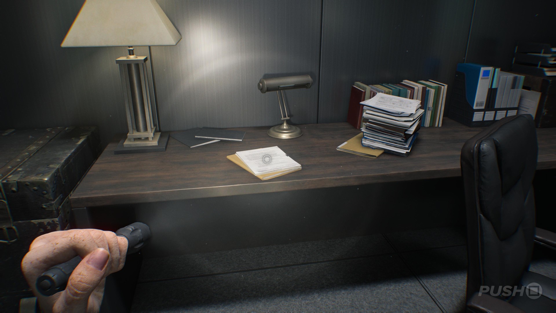 - You'll reach an Office, and the File is on the first desk in front of you